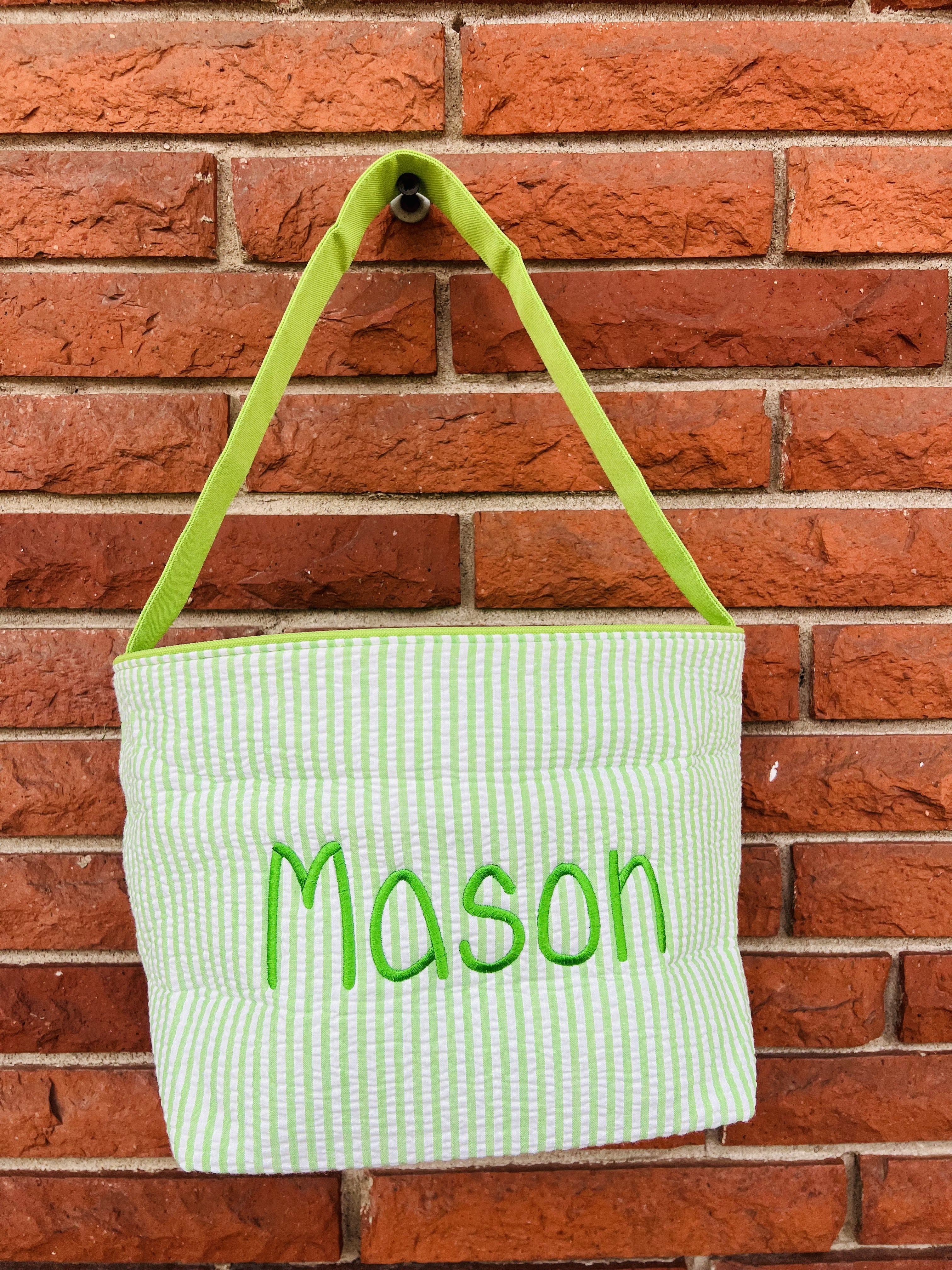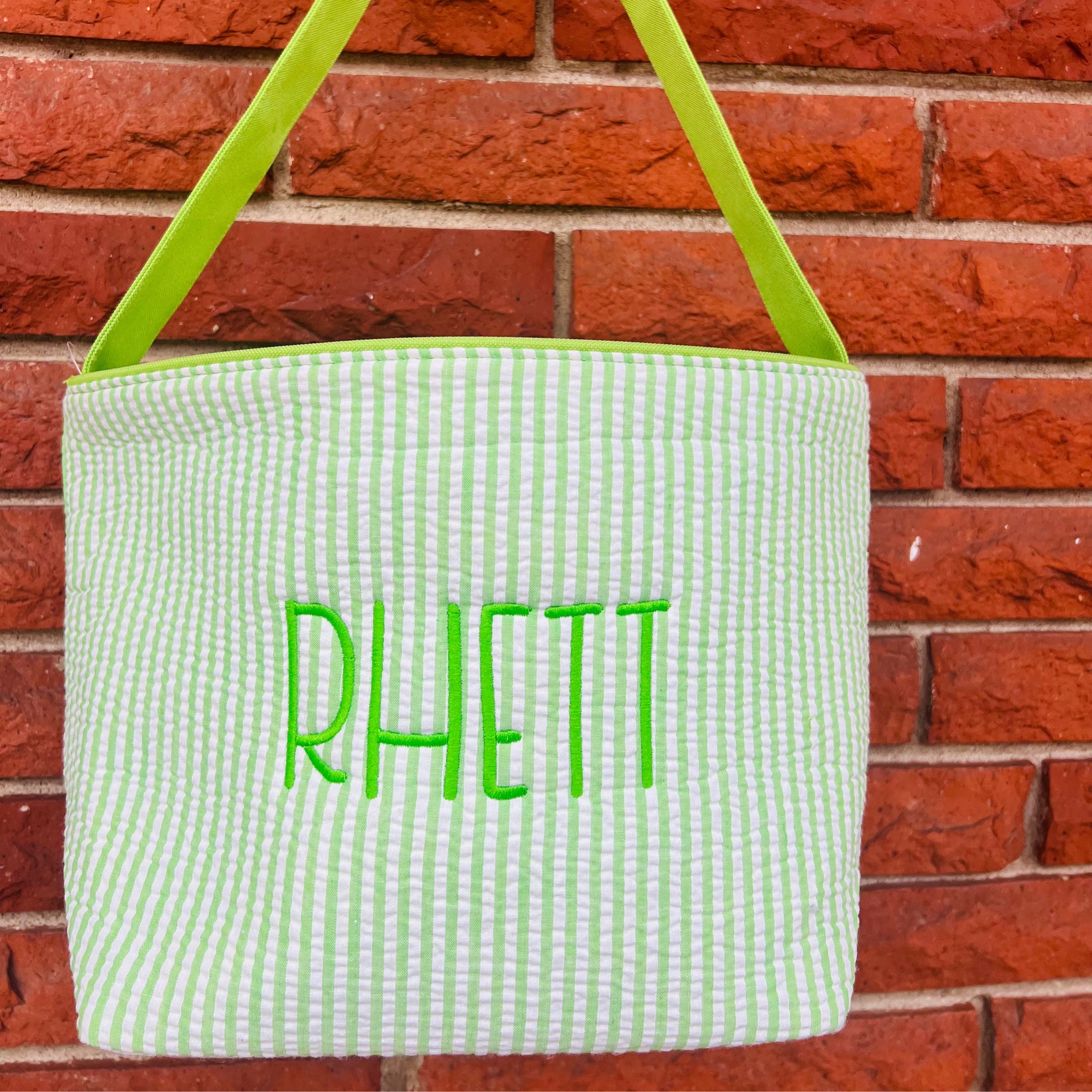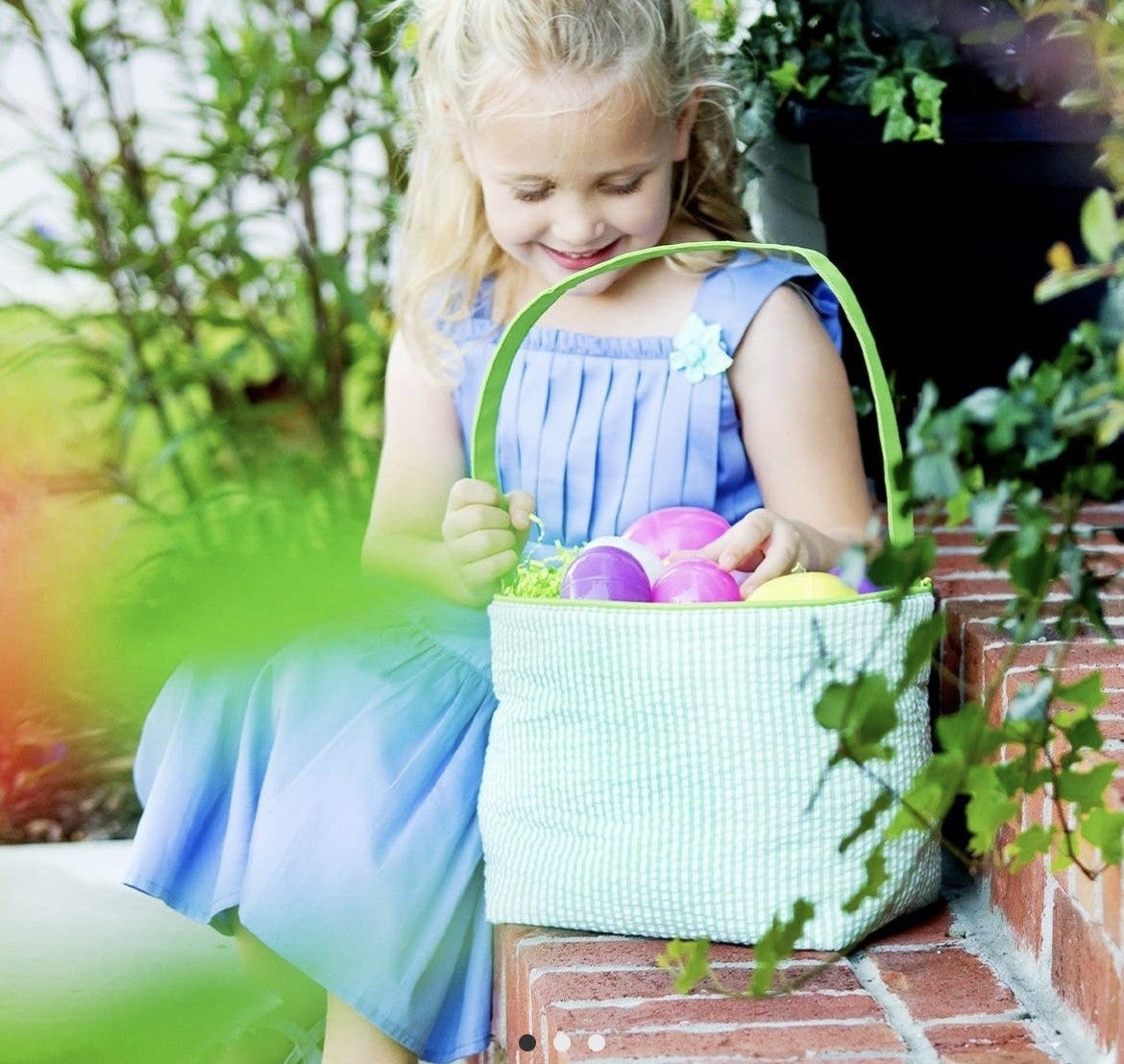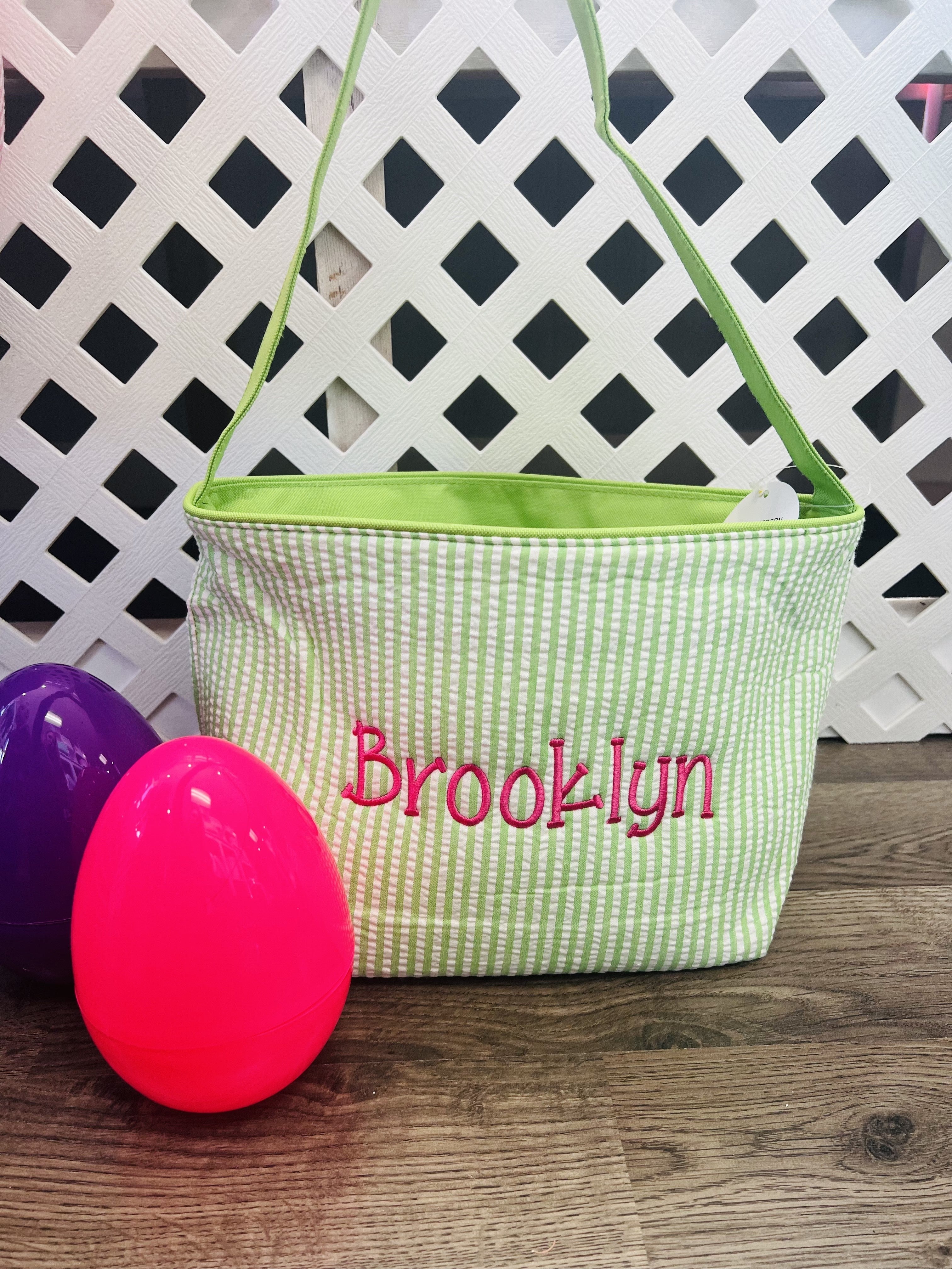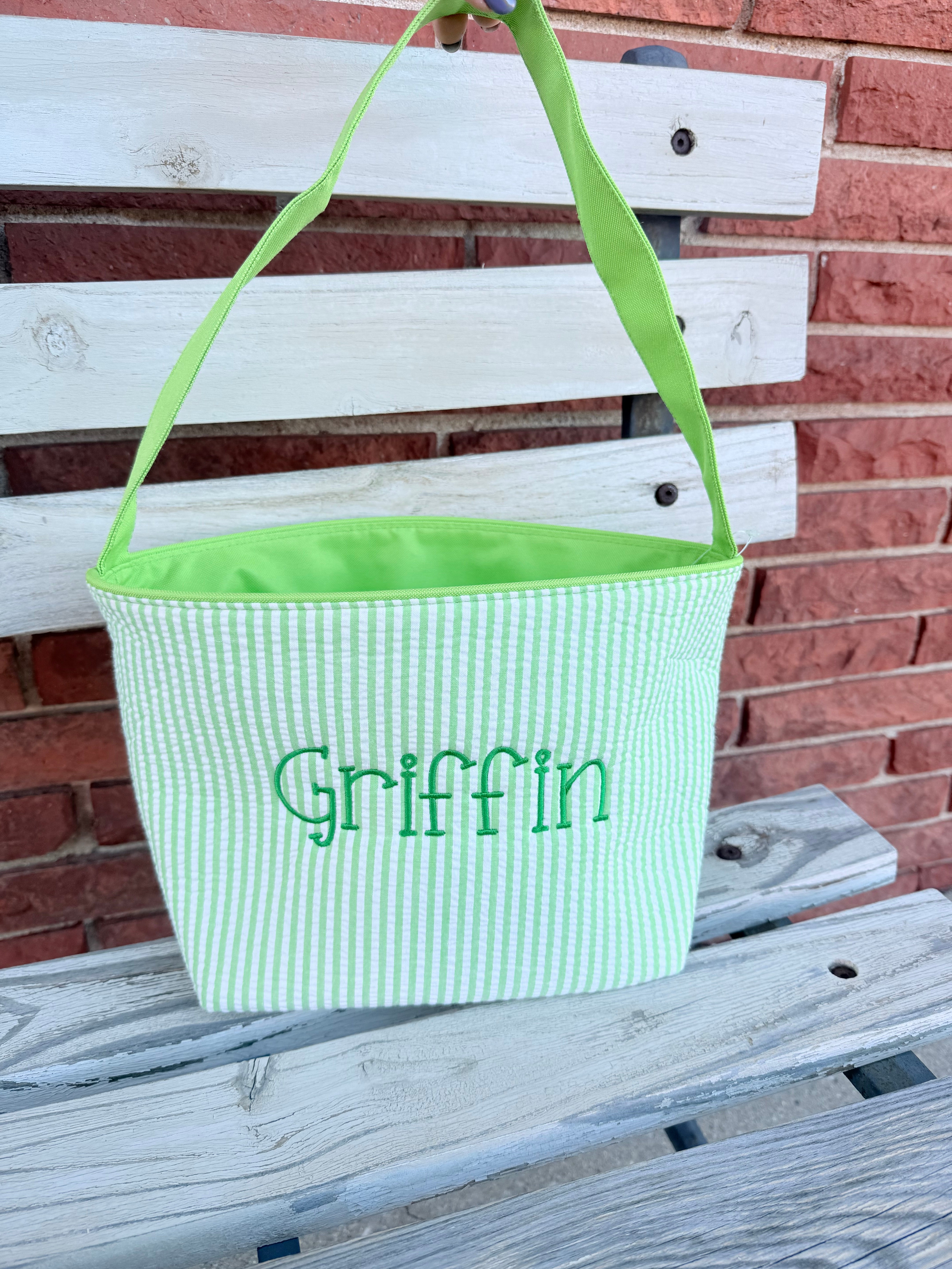 Viv & Lou - Green Seersucker Foldable Easter Basket
