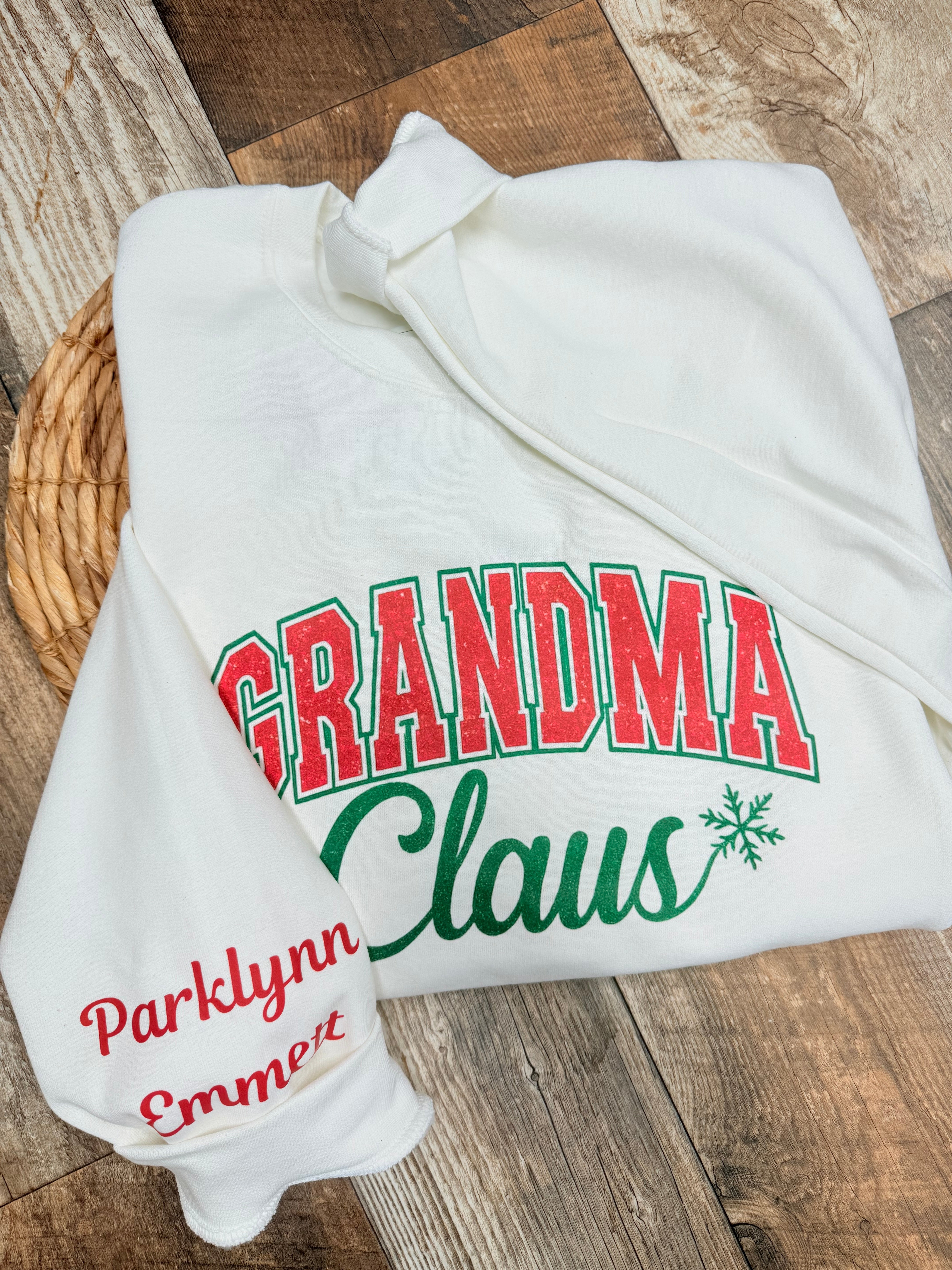 Grandma, Mama, Nana Claus Crewneck Faux Glitter