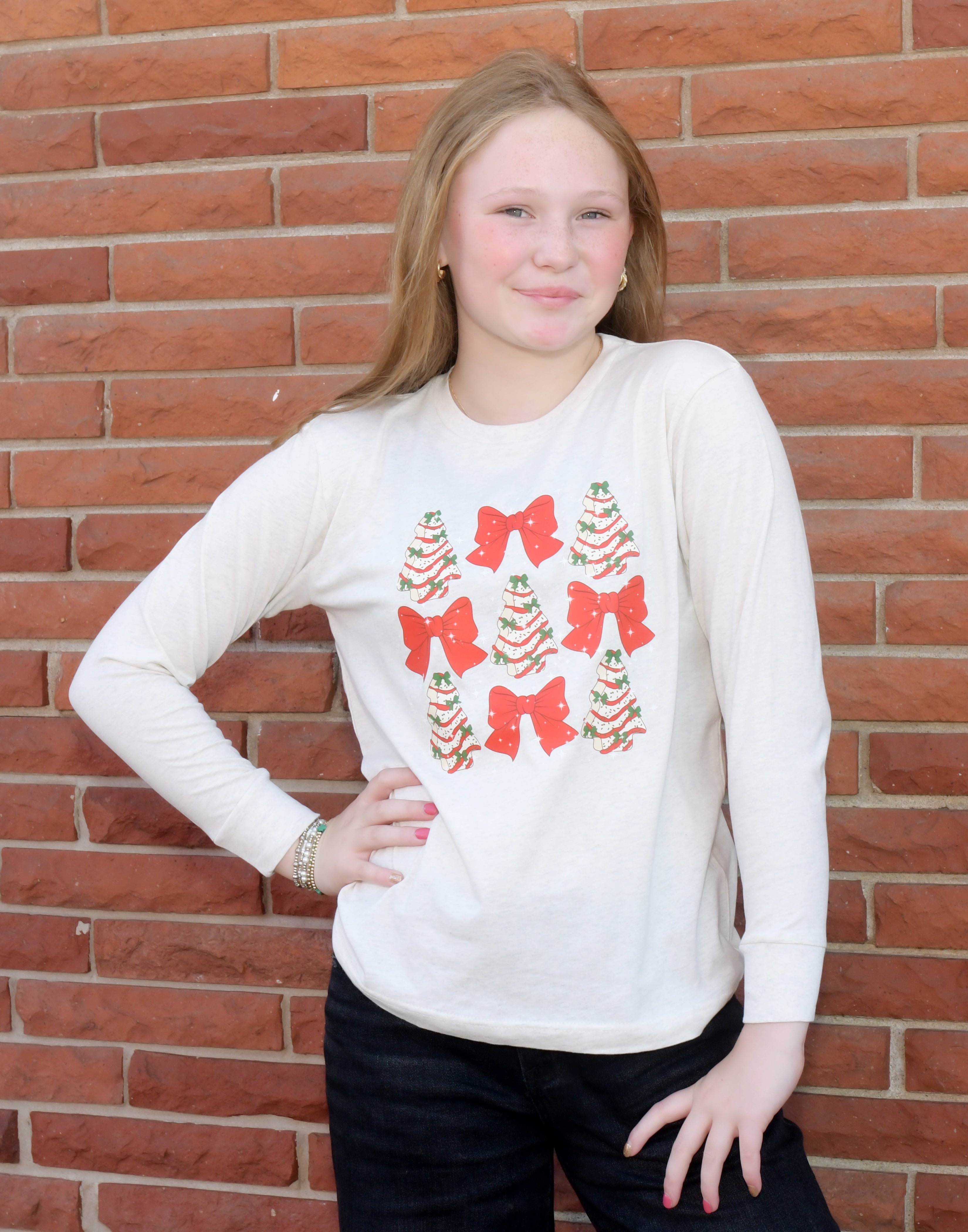 • Cute and comfy long-sleeve tee with a playful Snack Cakes 3 in a Row design -