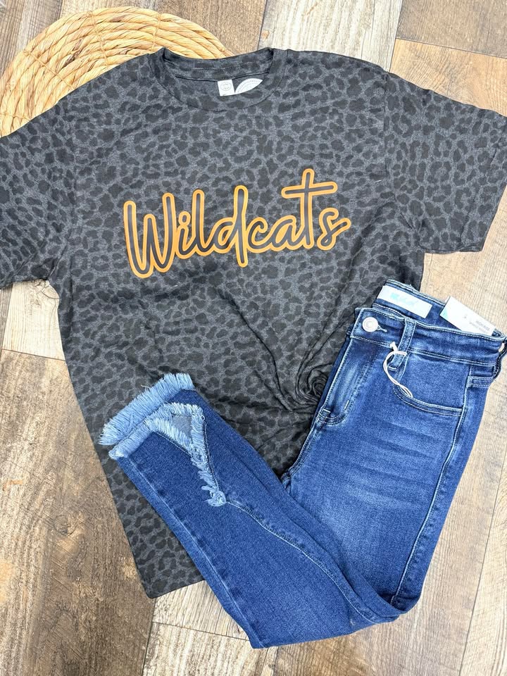 Custom Outlined Cheetah Cursive Tee/Sweatshirt/Hoodie (You Choose School/Mascot!)
