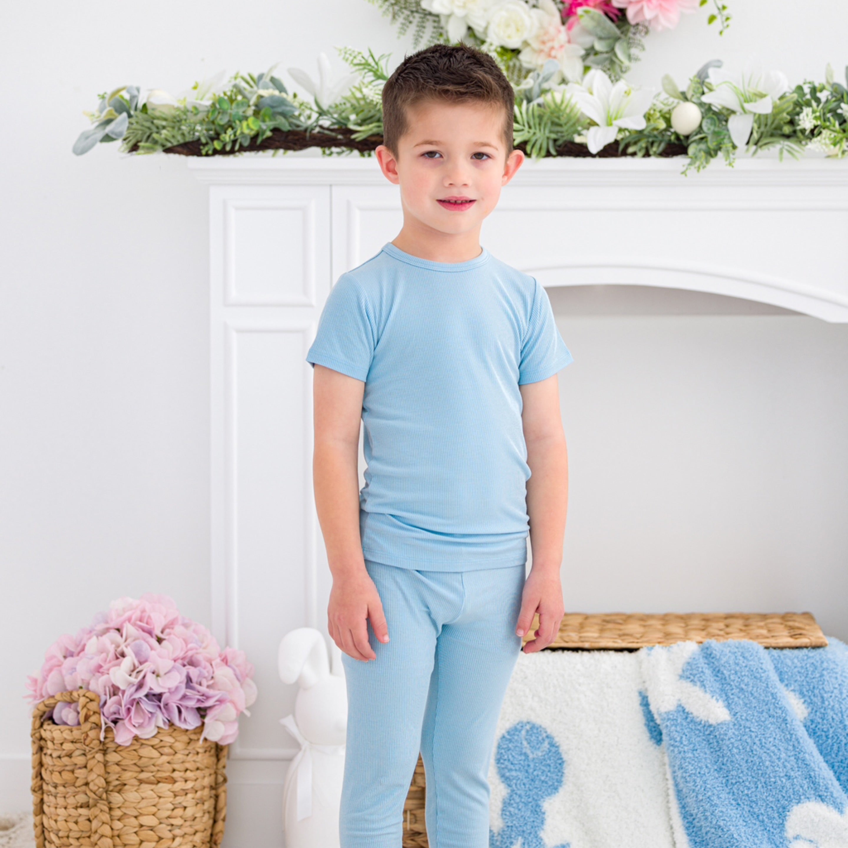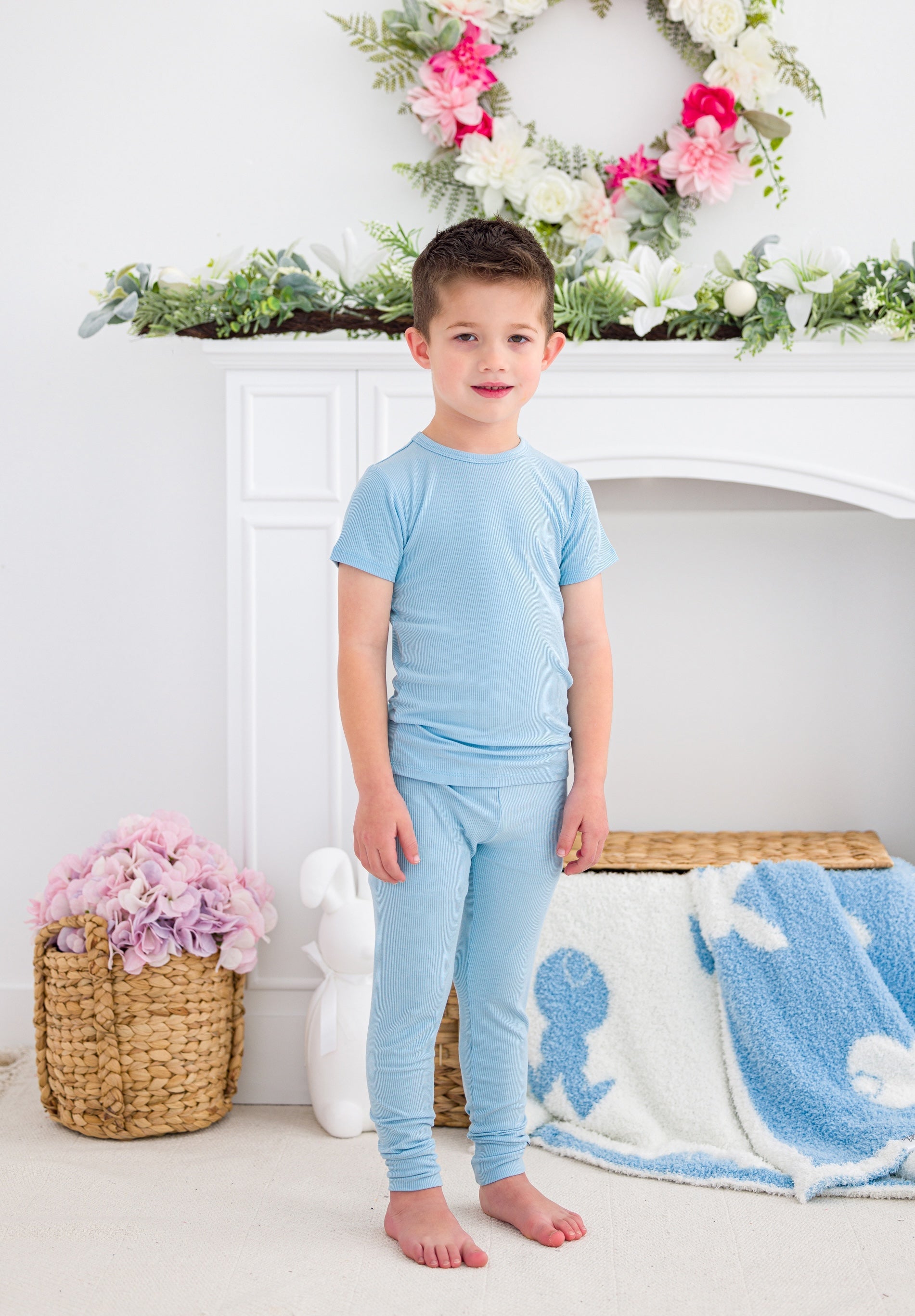 Baby Blue Ribbed 2 Piece PJ - Birdie Bean
