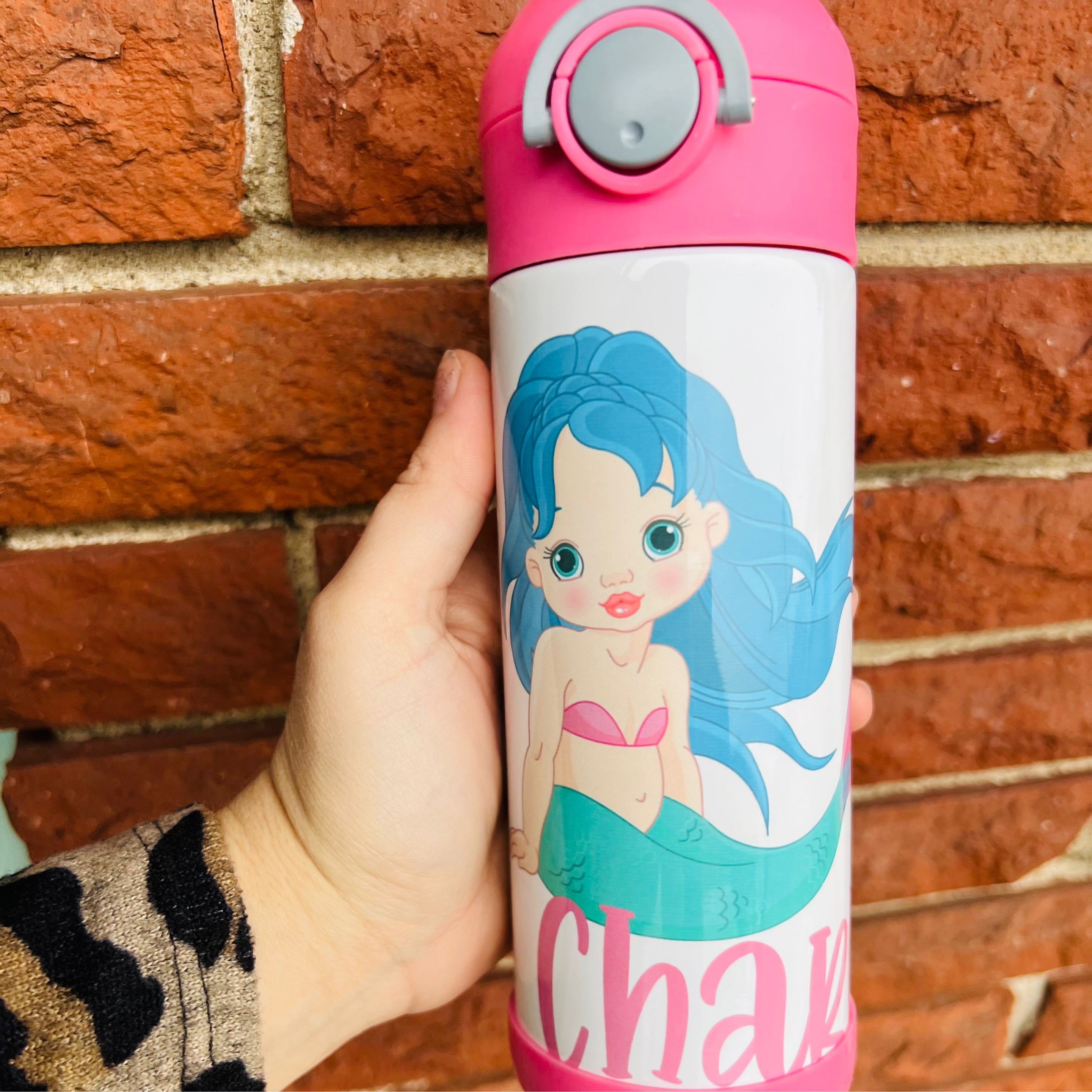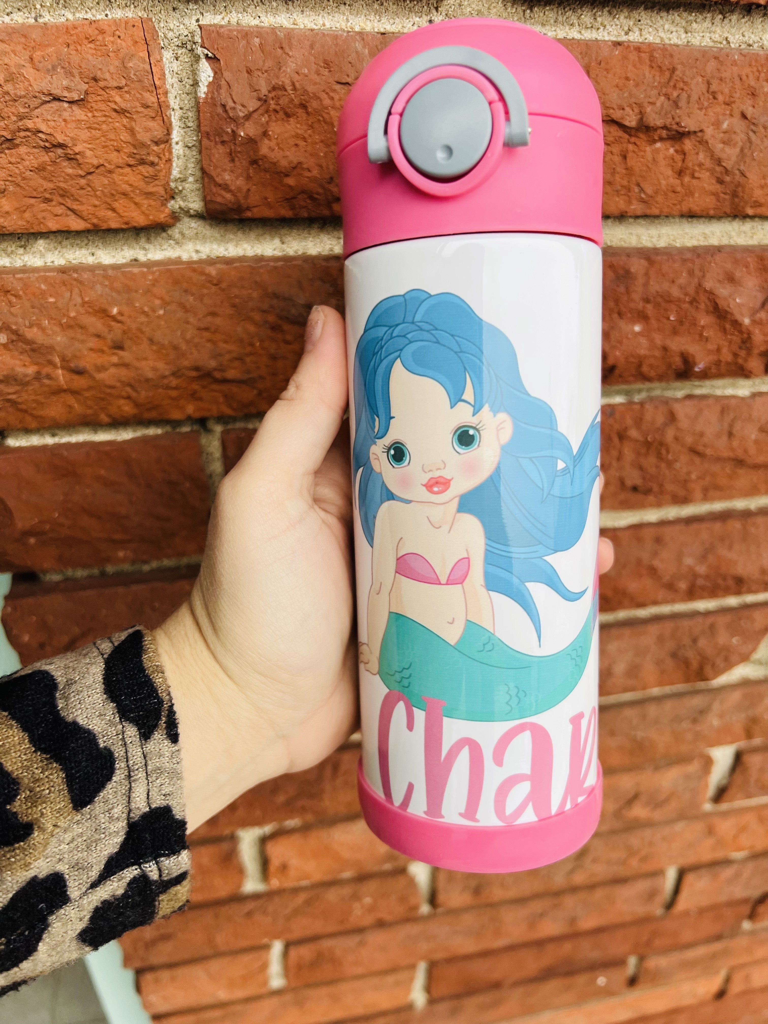 Make a splash with our Mermaid 12 oz Flip top Water Bottle! This whimsical bottle is made to order and has a 5-10 business day TAT. Enjoy refreshing cold drinks all day long with the convenient flip top straw. Perfect for anyone who wants to add some magic to their hydration game.