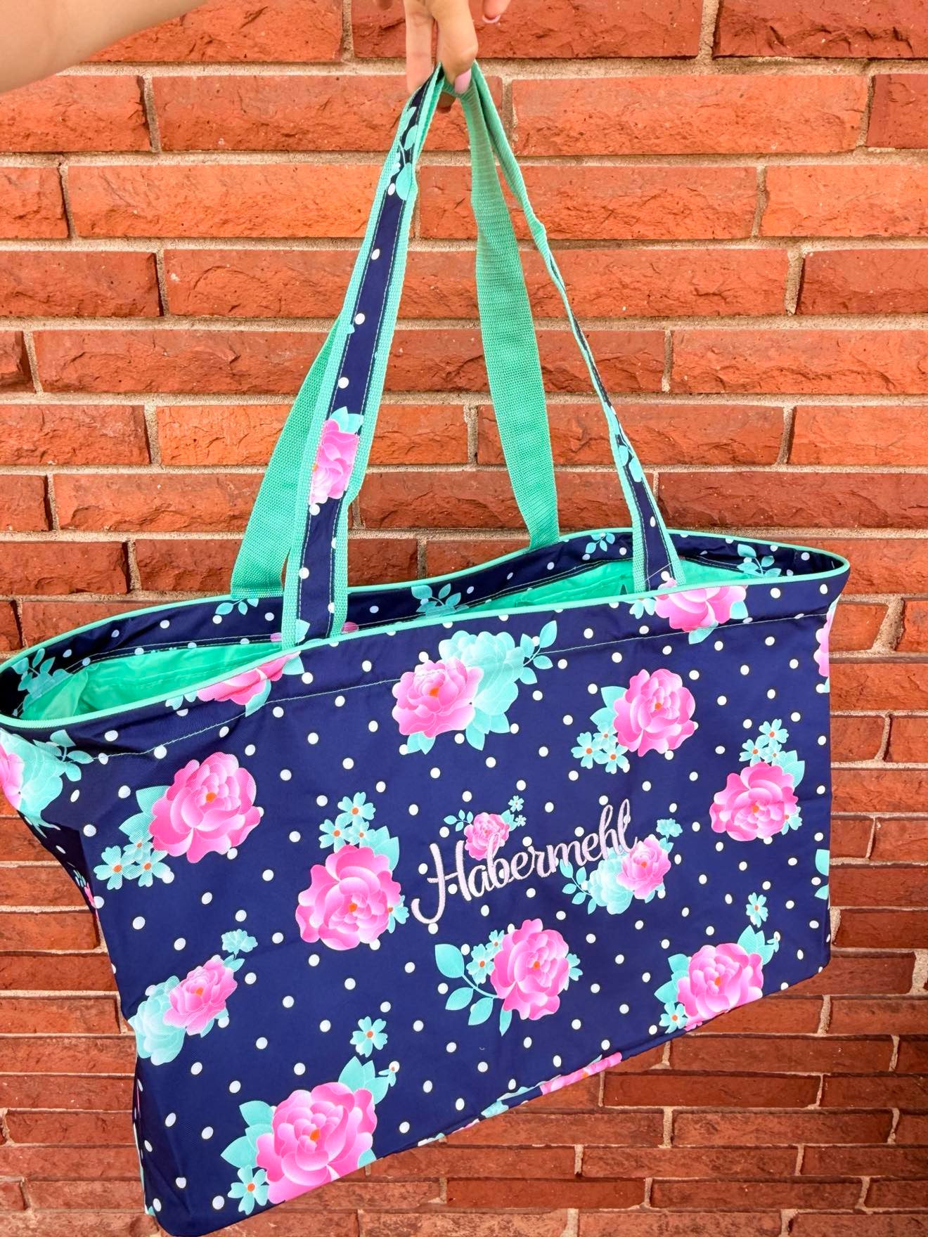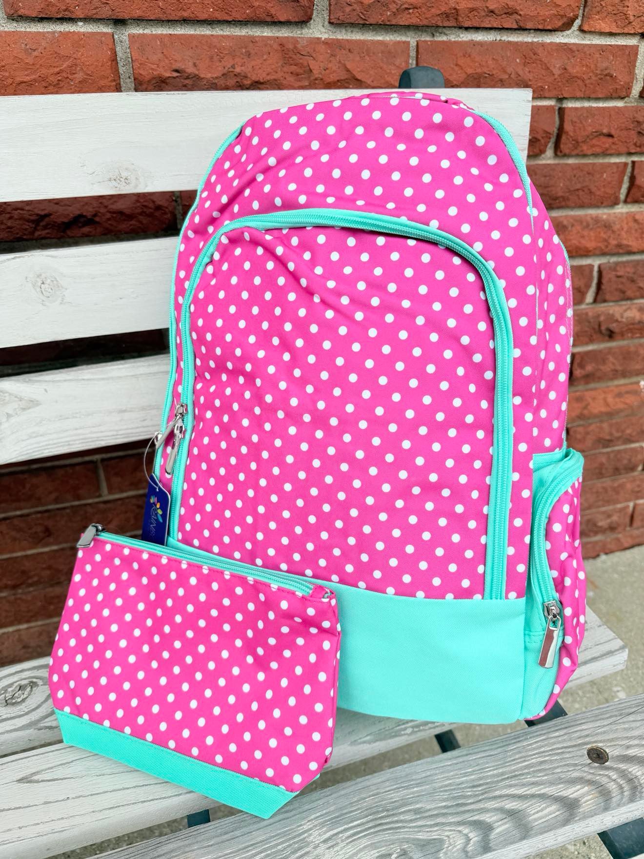 Hot Pink & Mint Polka Dot Book bag