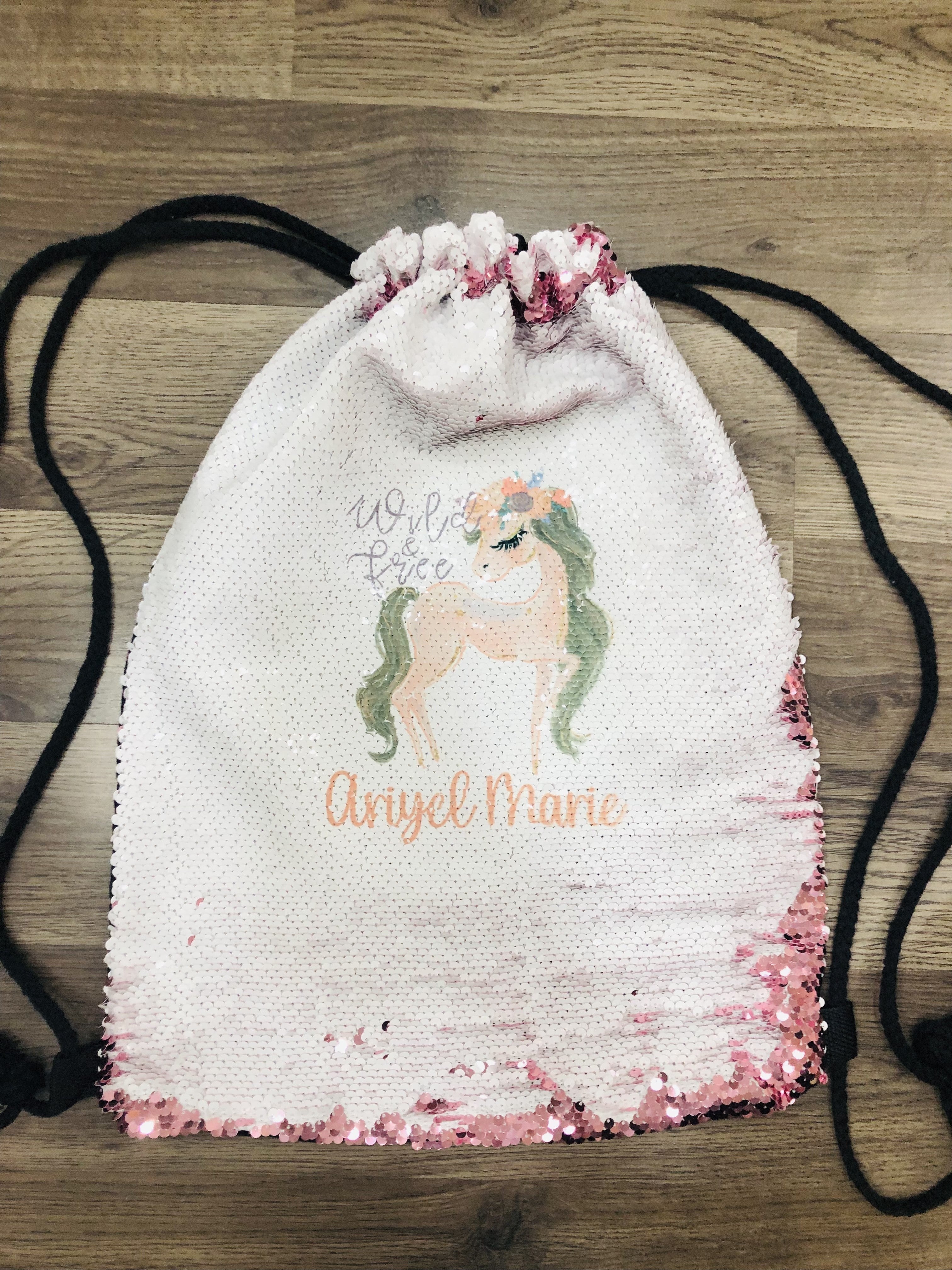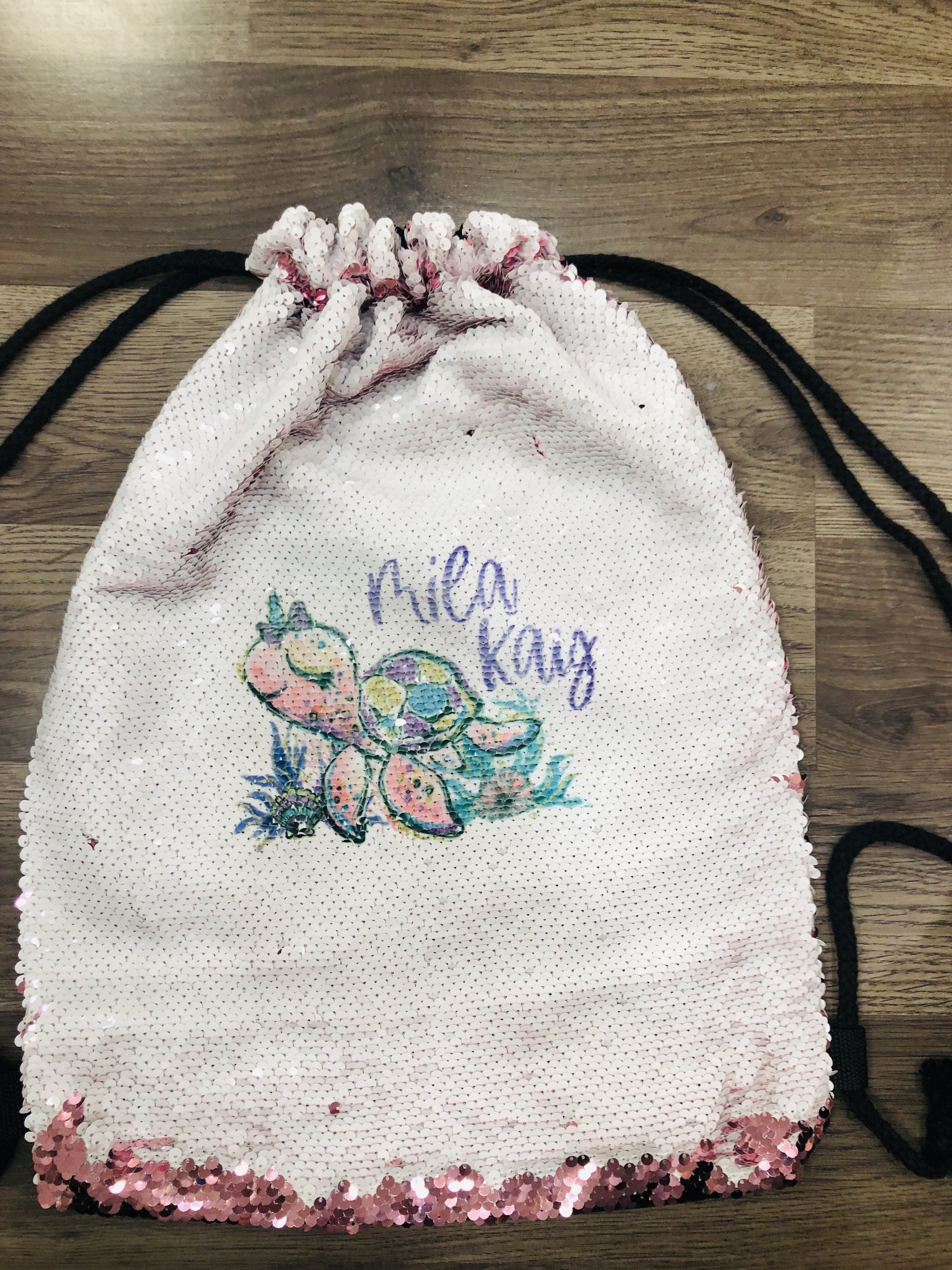 Pink Flip Sequin Drawstring Bag