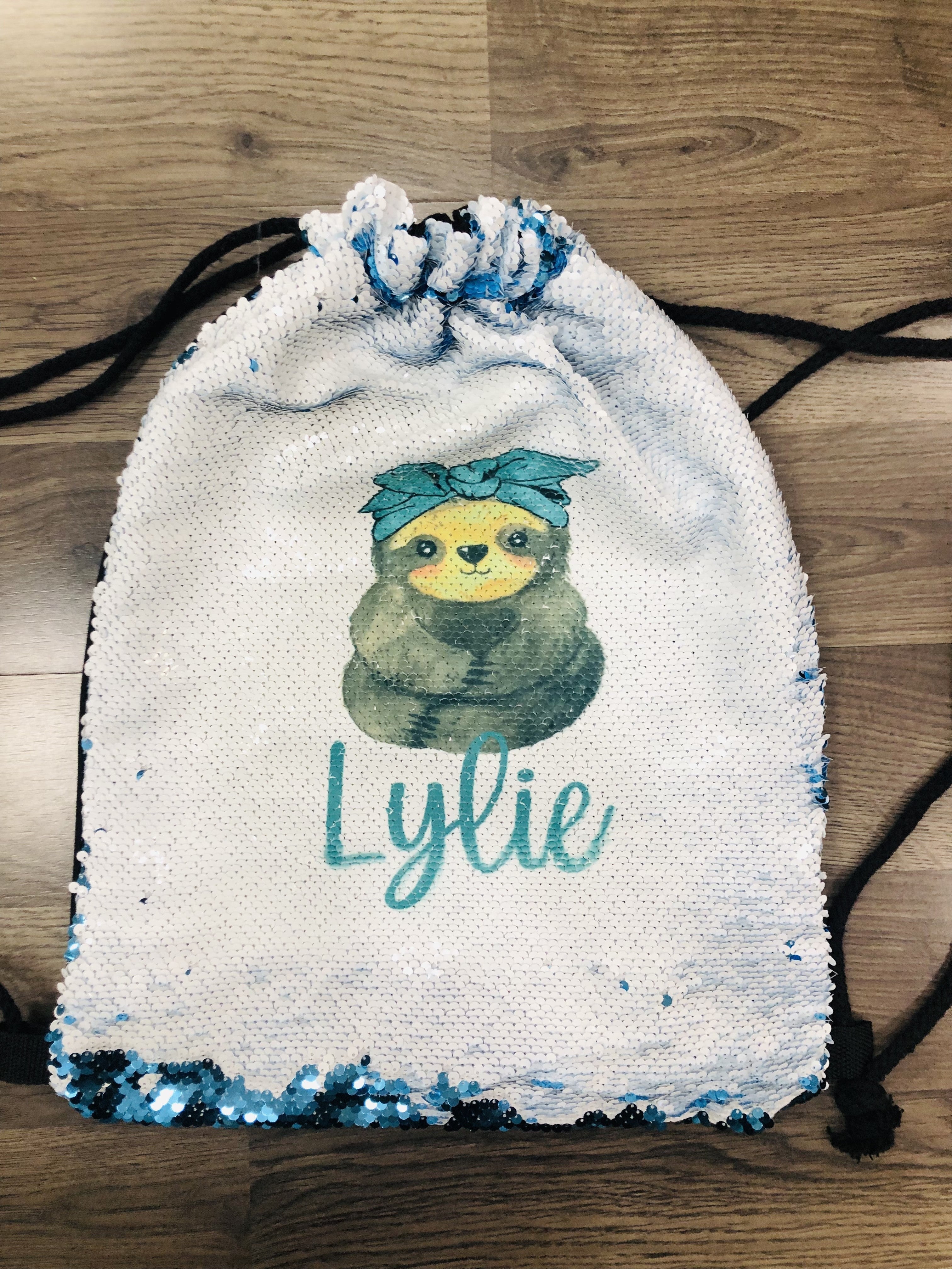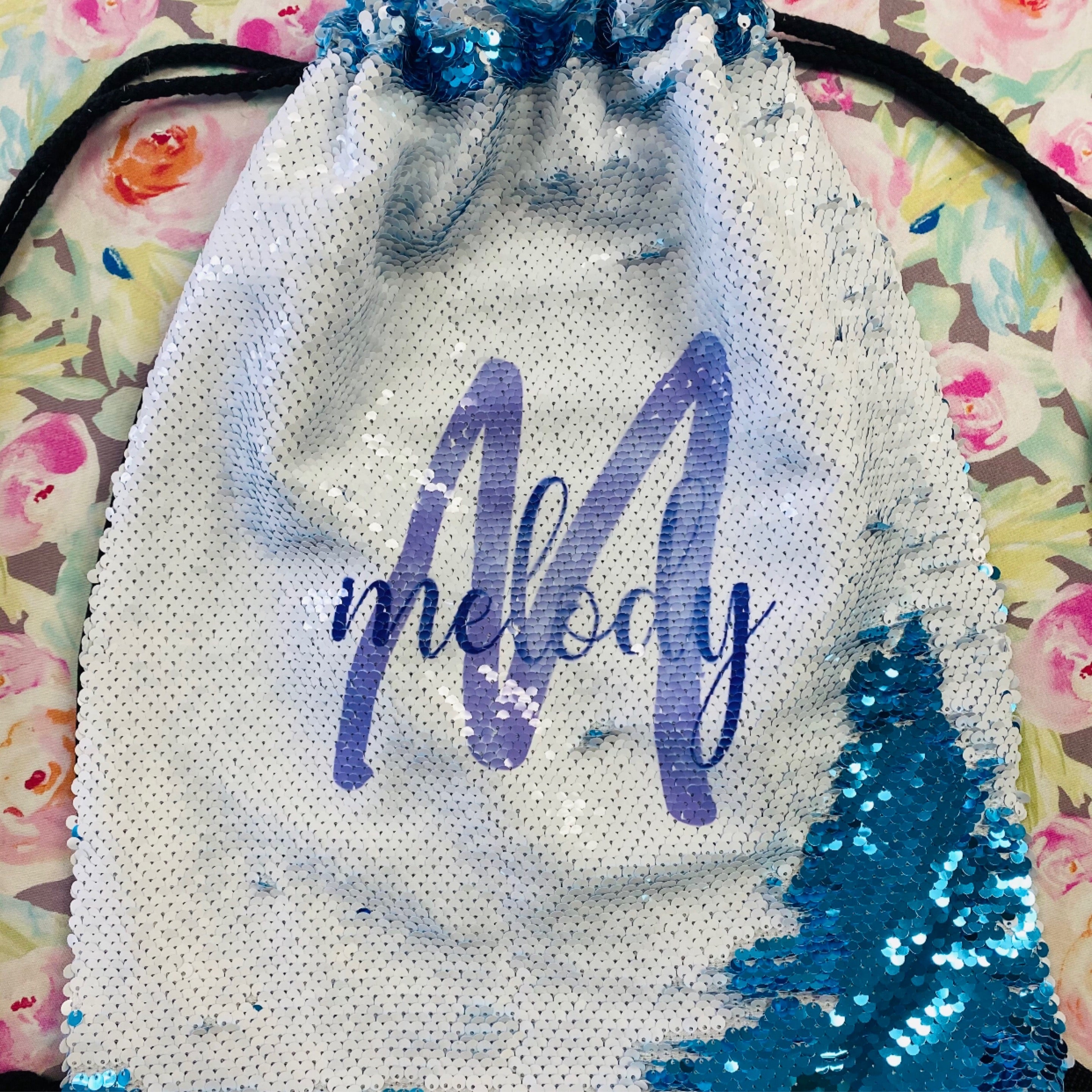 Blue Flip Sequin Drawstring Bag