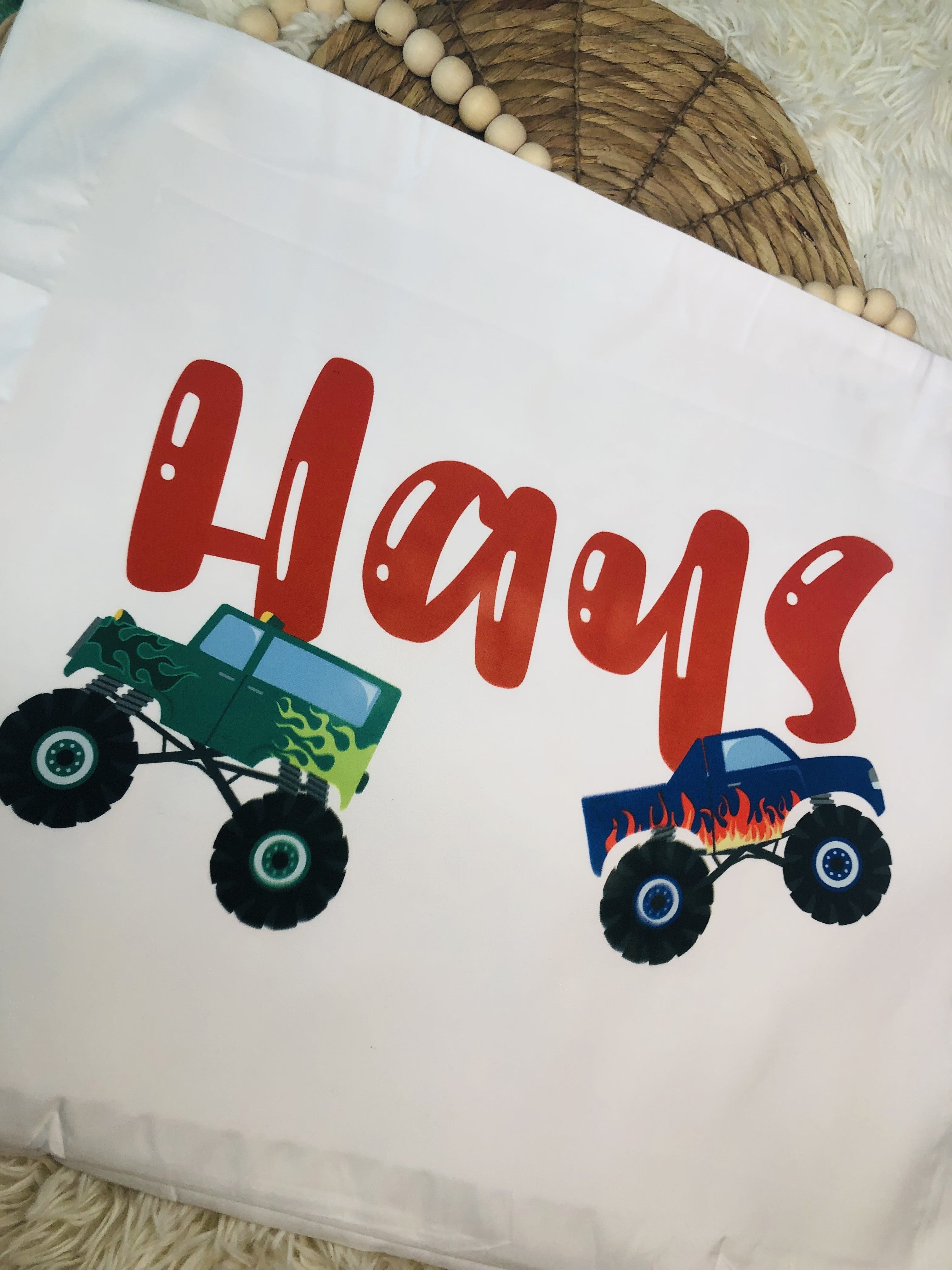 Rev up your bedroom with our Monster Truck Full Size Personalized Pillow Case! With a speedy 10-day turnaround time, your standard pillow will be transformed into a personalized powerhouse of style. No more boring bedding, this pillow case is sure to be the hit of the neighborhood (or at least your household).