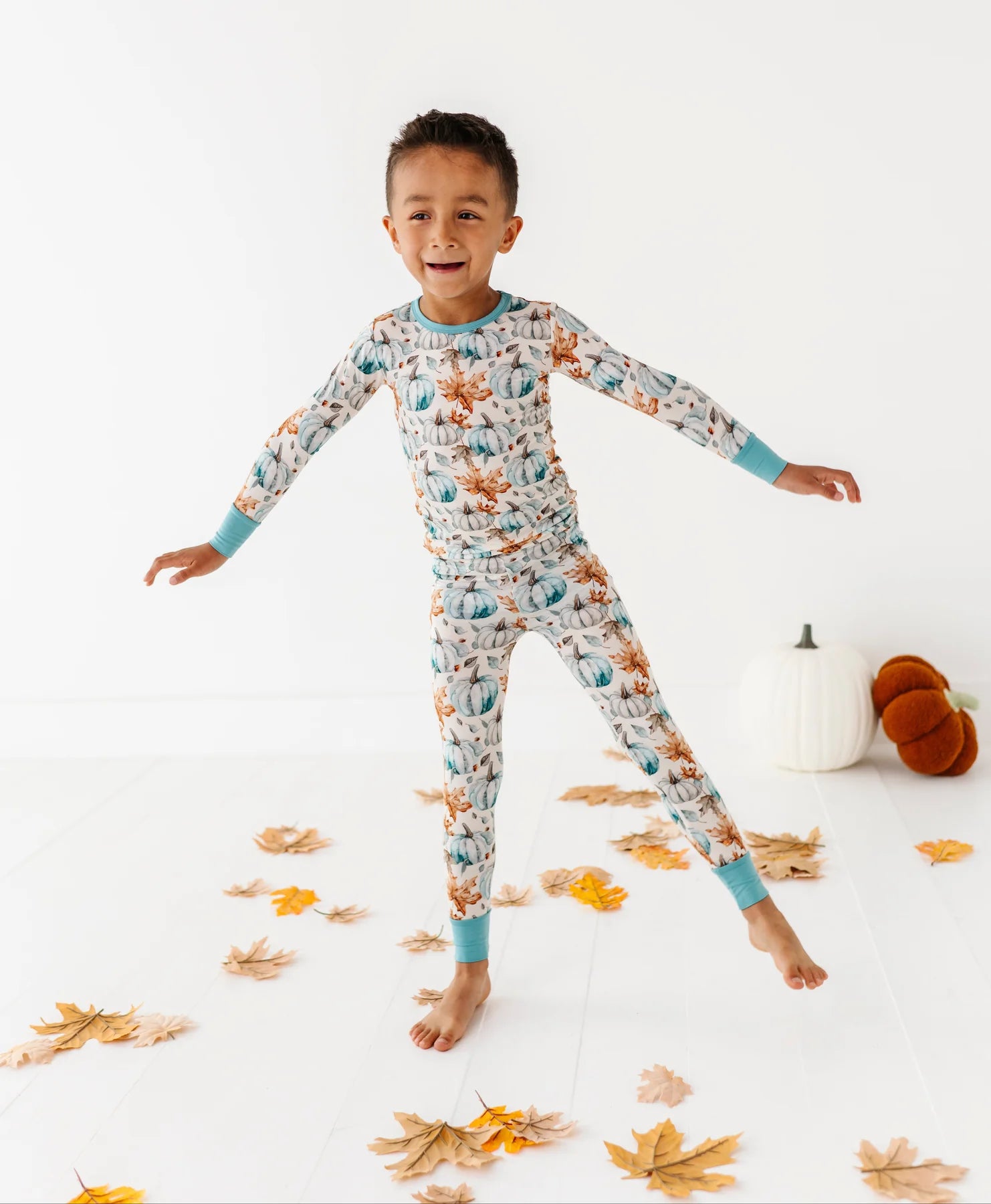 Cozy up in calm, rustic style with these autumn-ready jammies! This convertible romper and two-piece pajama set features a serene print of watercolor pumpkins and fall foliage in soft, earthy tones. Perfect for welcoming the season in comfort. Made from our signature bamboo blend, it’s breathable, stretchy, and buttery soft—ideal for crisp evenings, story time snuggles, or lazy weekend mornings.