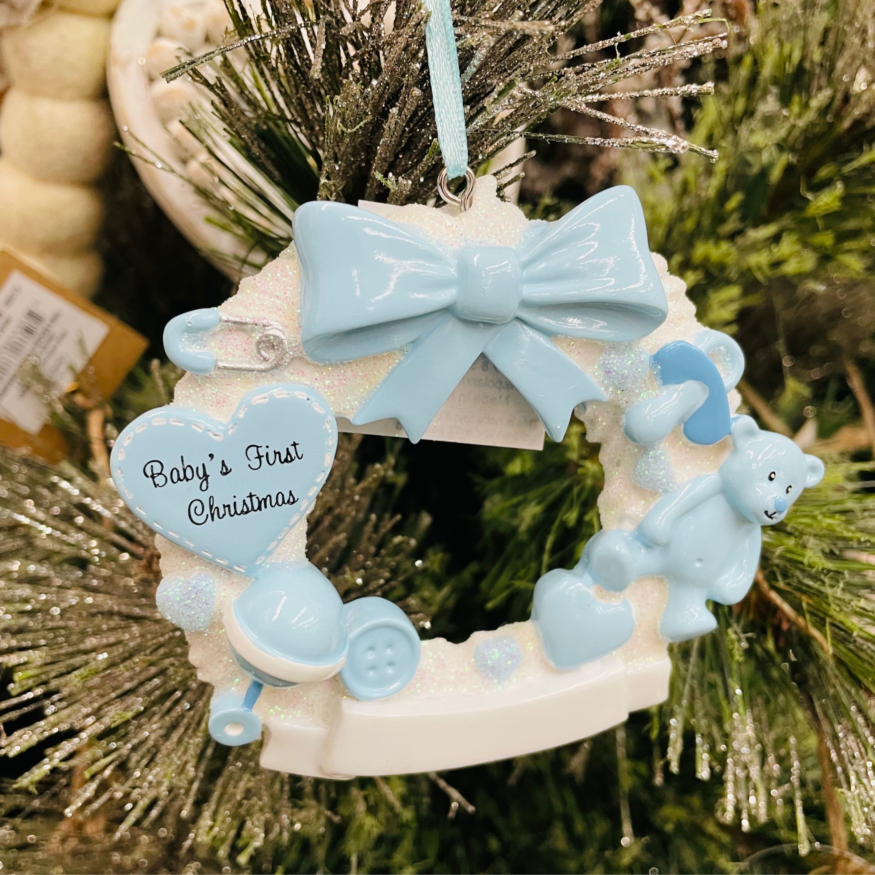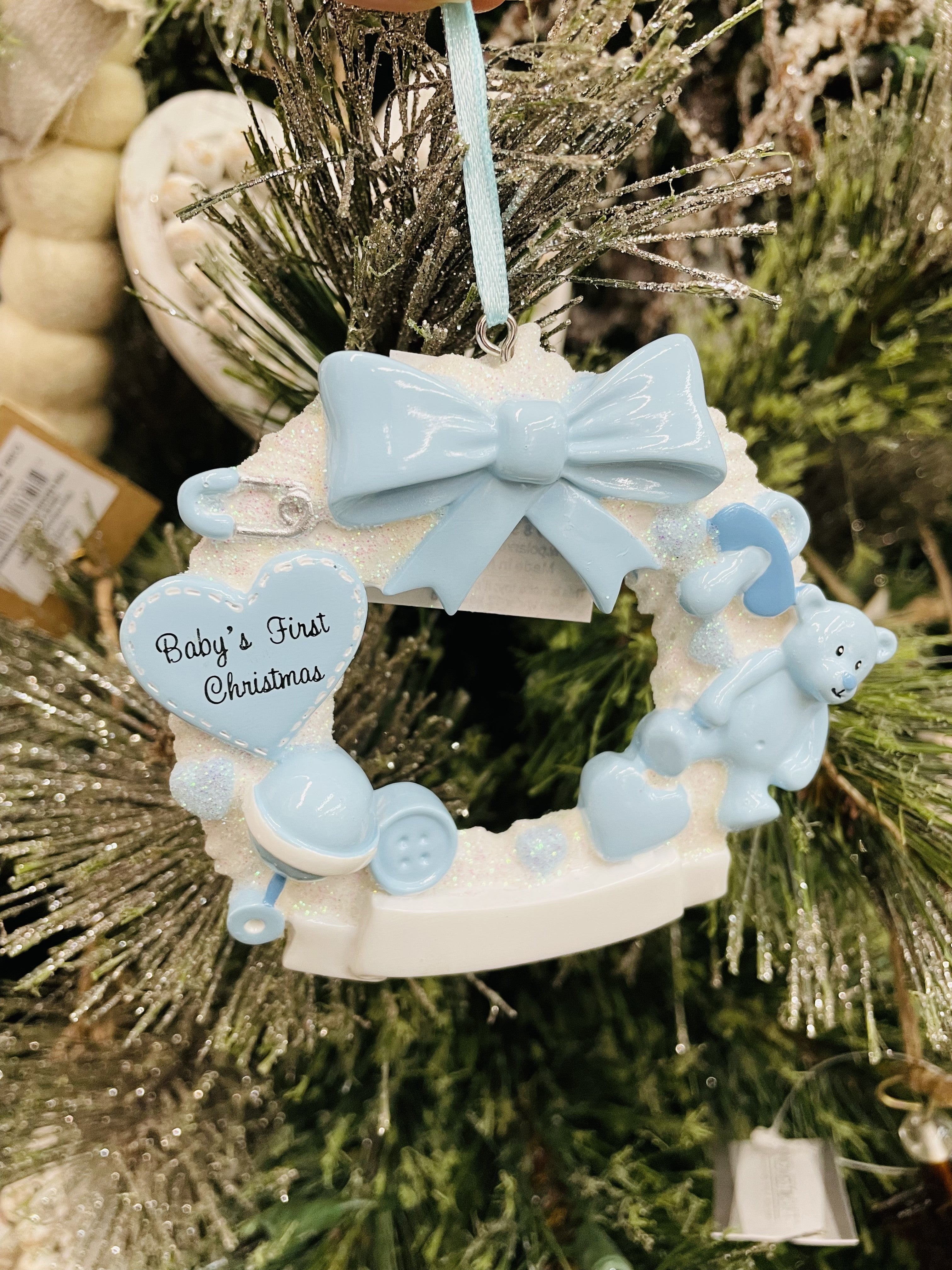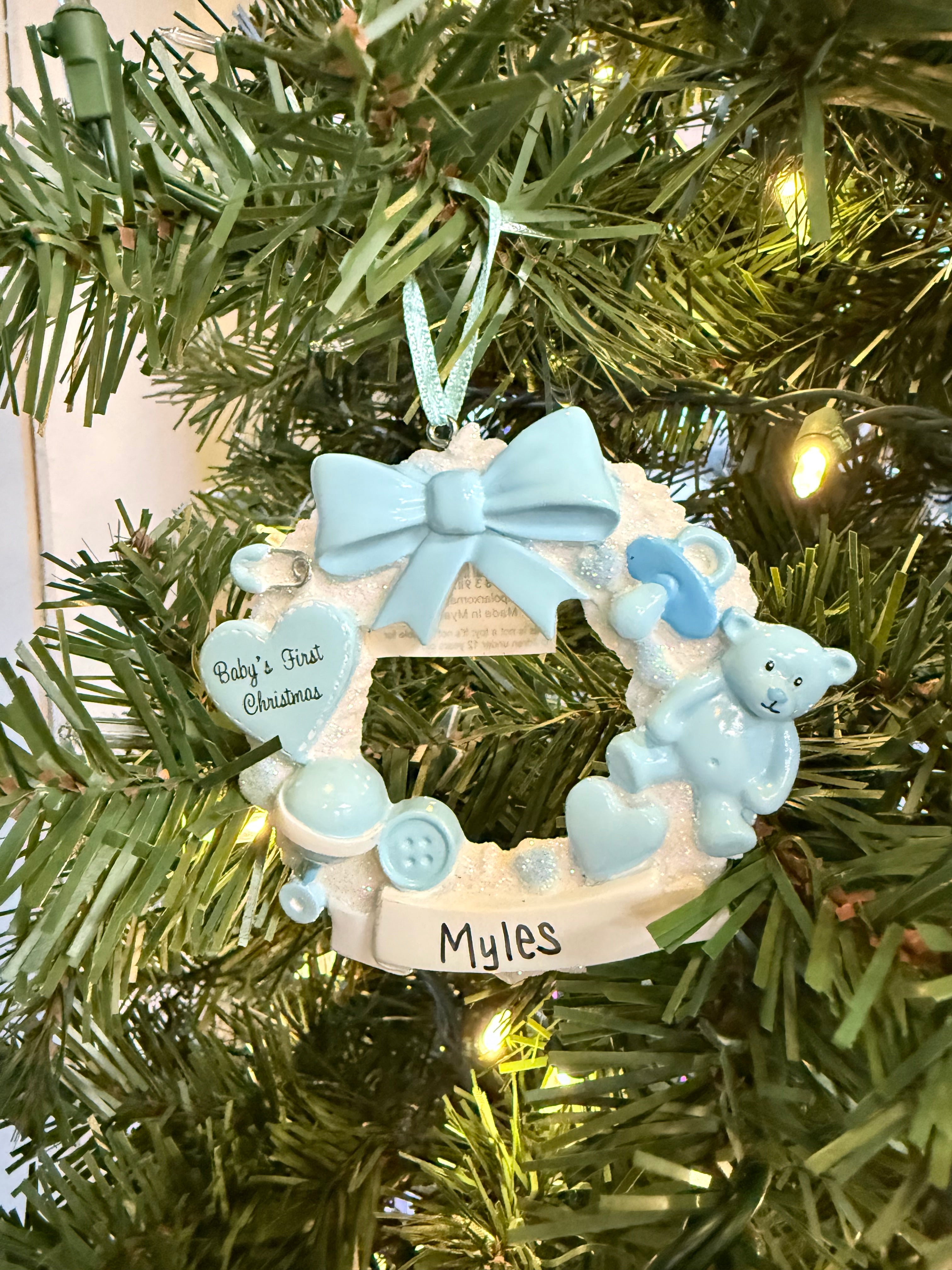 Blue Baby’s First Christmas Wreath Personalized Ornament