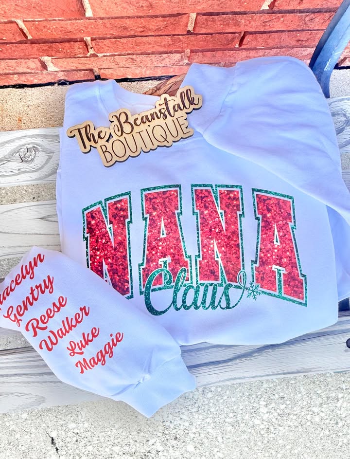 Grandma, Mama, Nana Claus Crewneck Faux Glitter