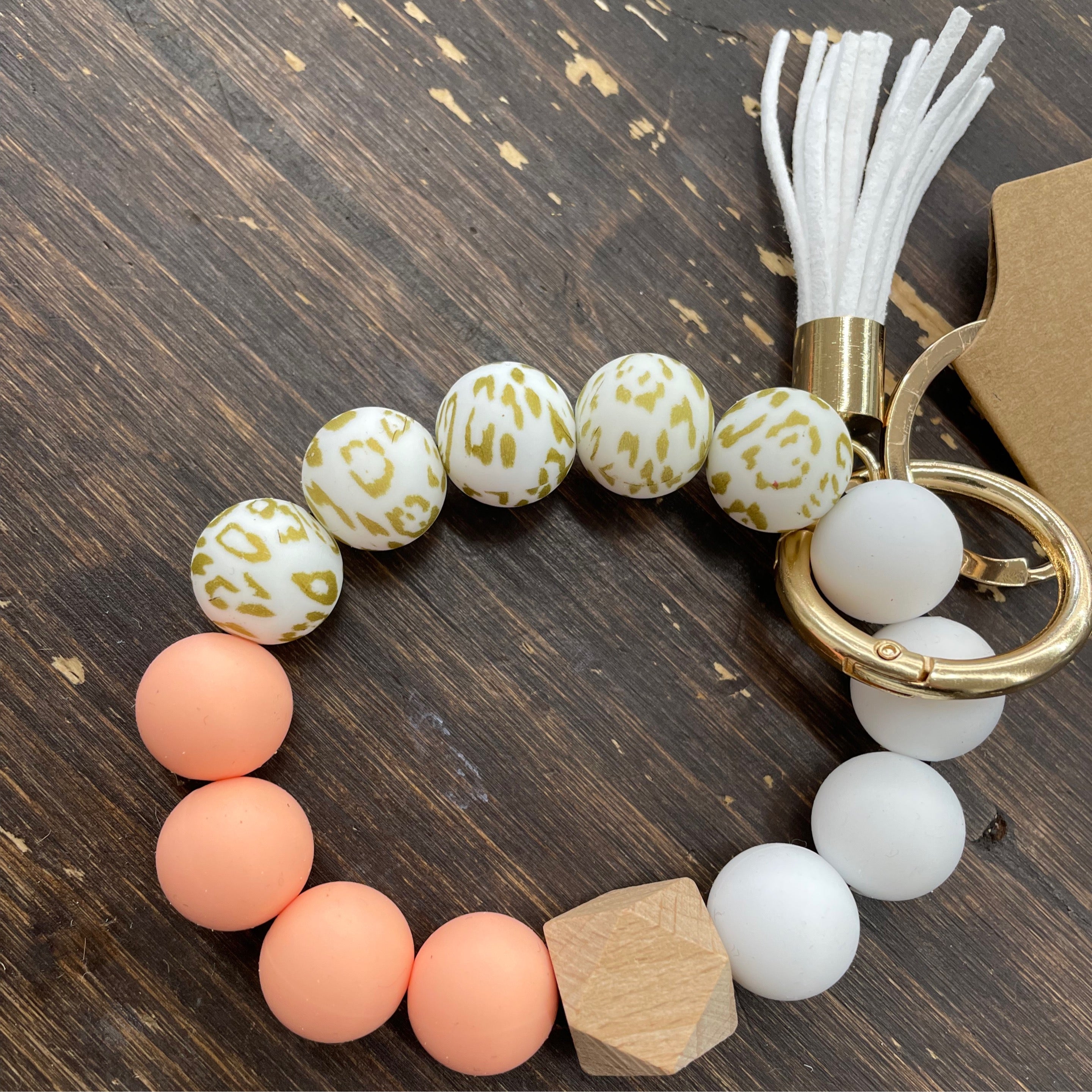 Wristlet Keychain - Peach white and gold