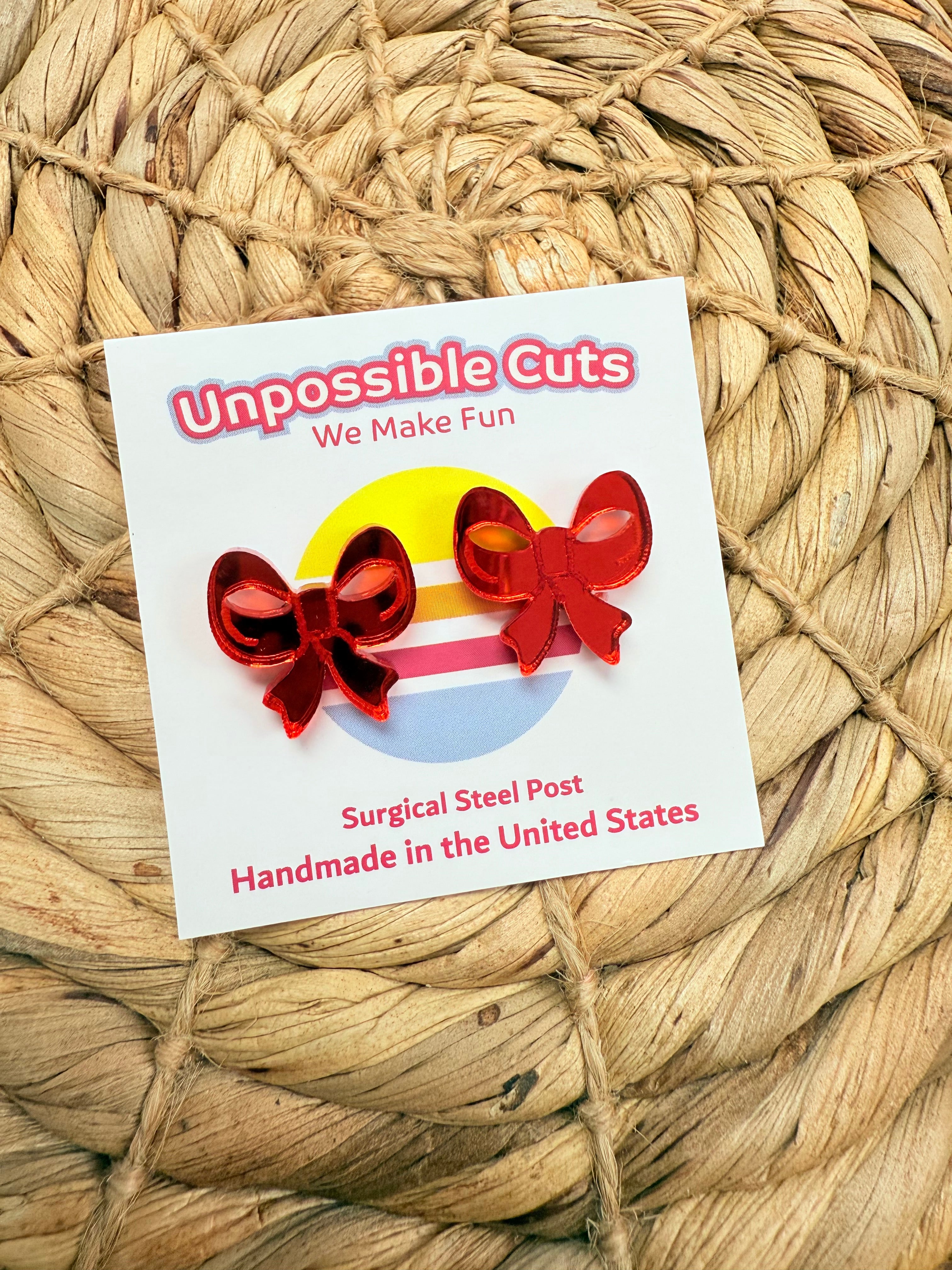 Red Bow Stud Earrings