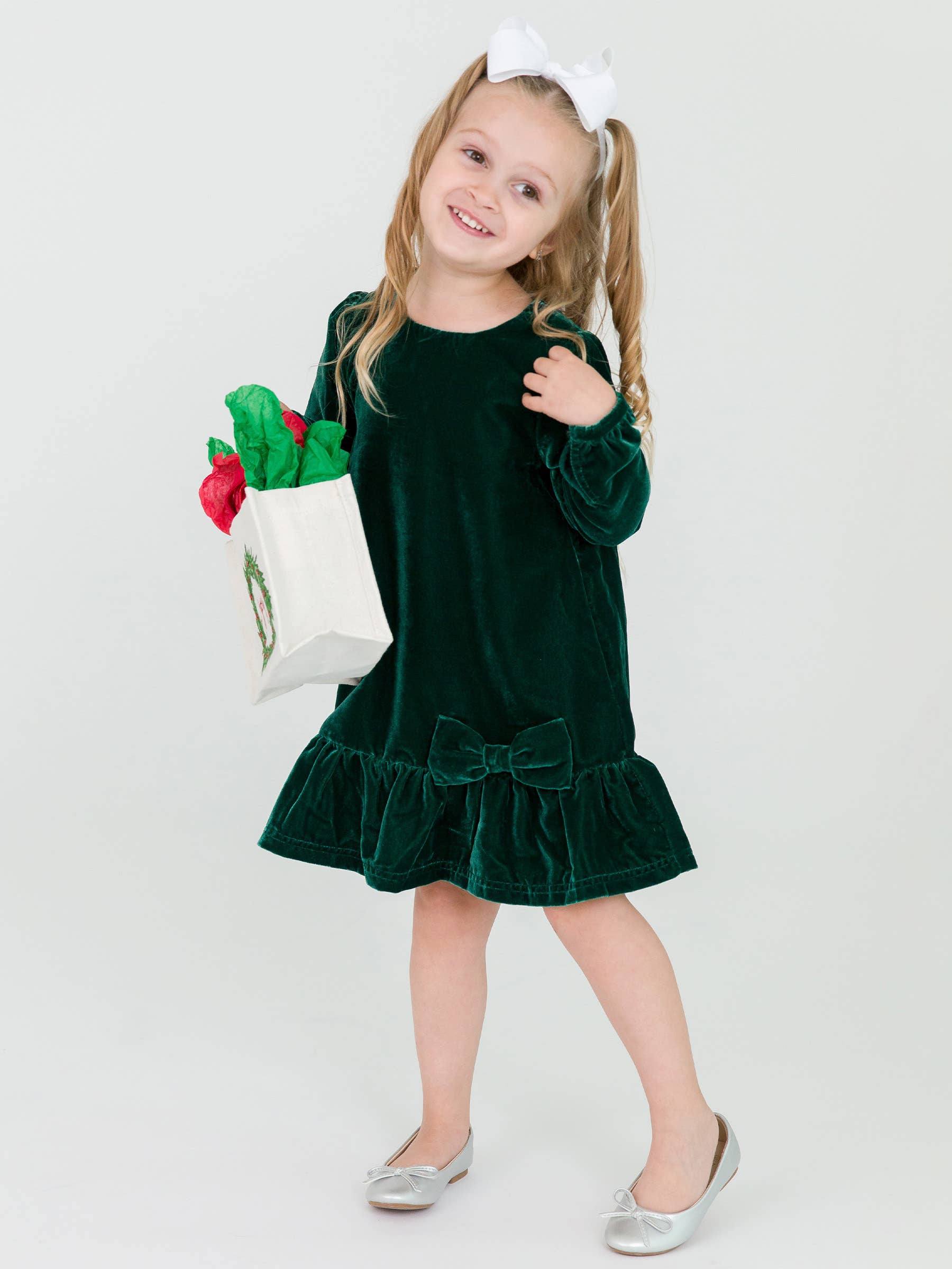 Elevate her wardrobe with our Velvet Long Sleeve Drop Waist Dress. Crafted from luxurious velvet fabric, this dress offers both comfort and sophistication making it perfect for Christmas photos and holiday parties. The elegant drop waist design, paired with the soft long sleeves, creates a charming ensemble for special occasions and picture perfect moments.