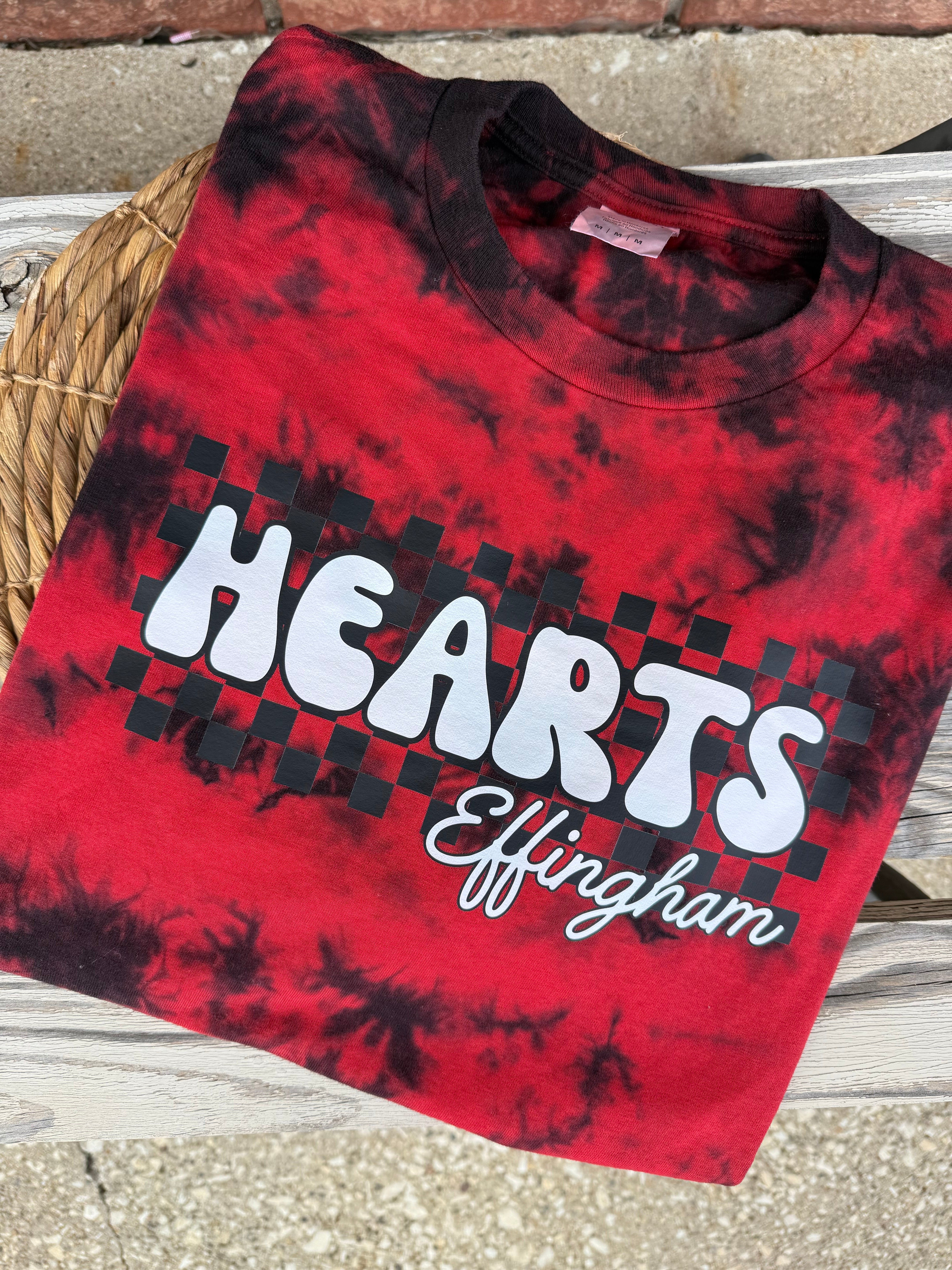 Show your spirit with the vibrant Hearts Check Tie Dye Tee, perfect for youth and adults!
