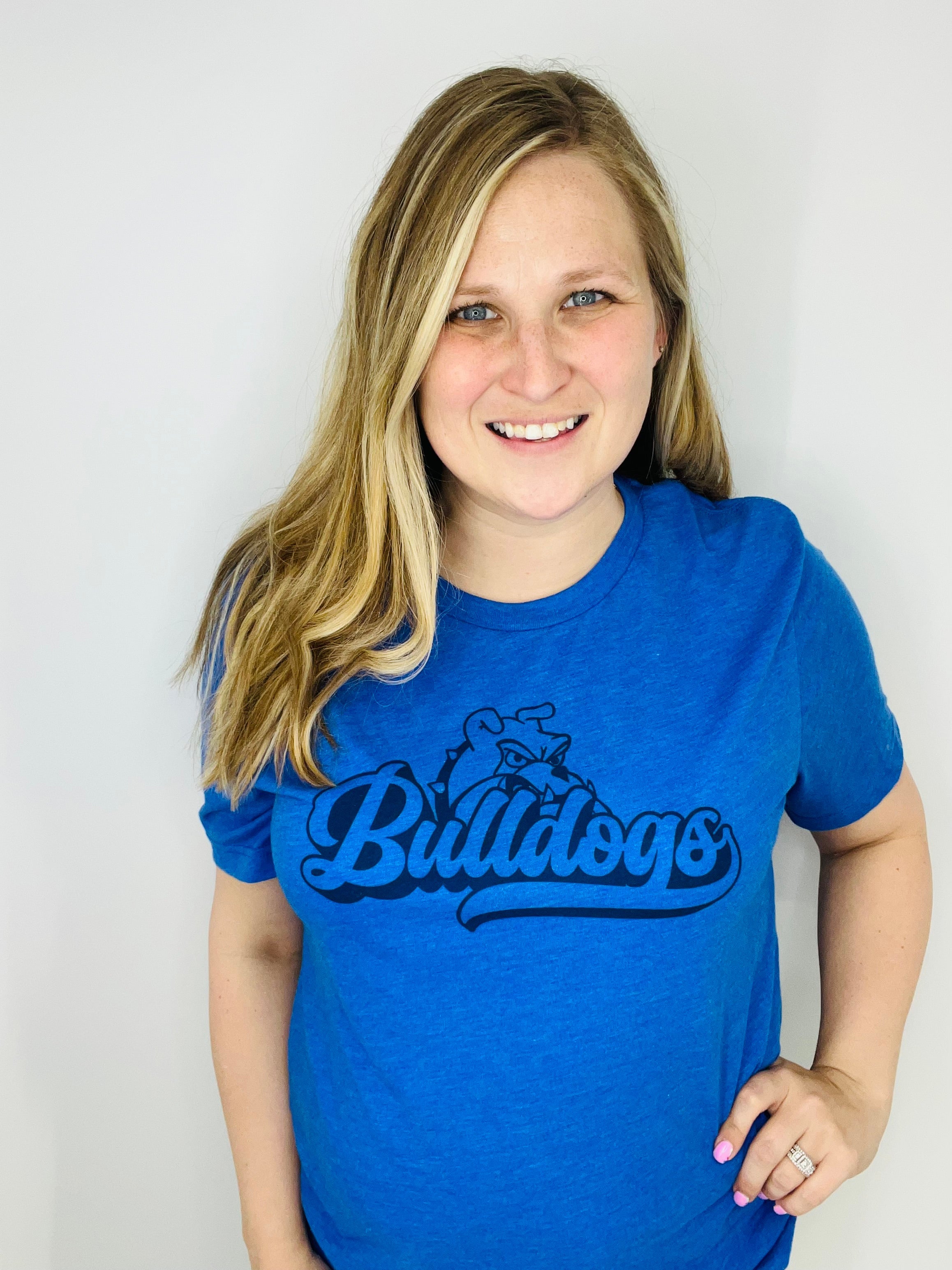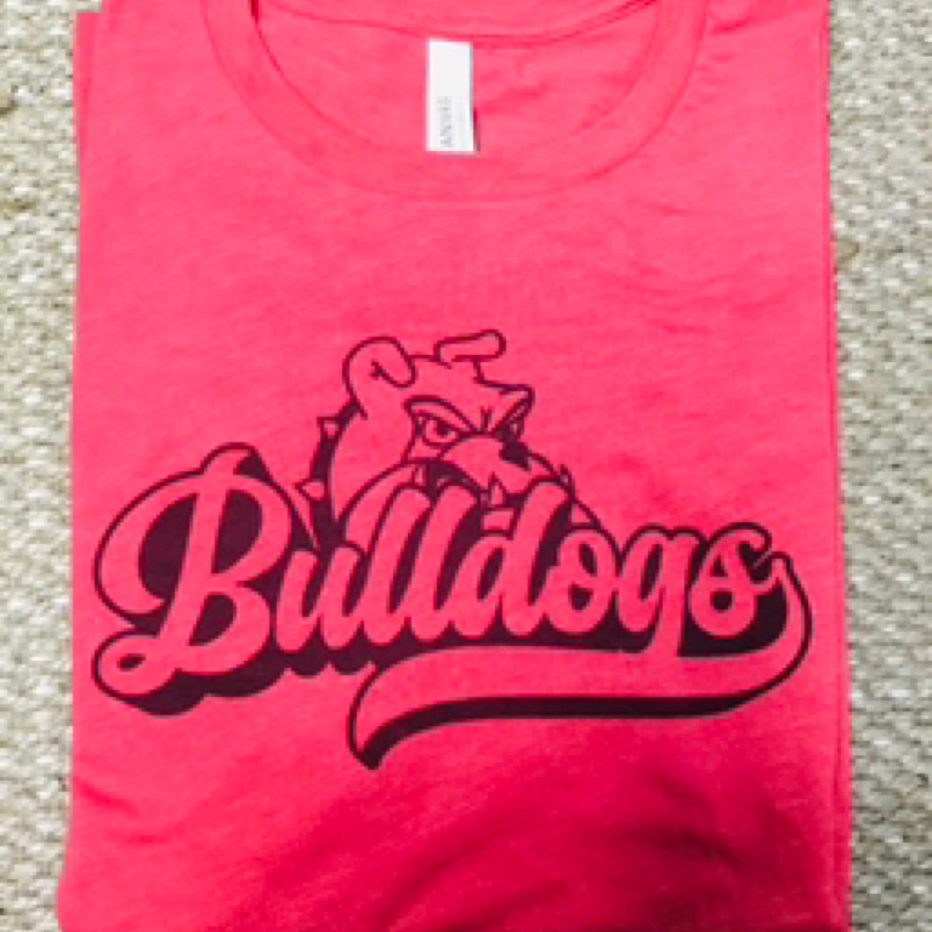 The "Bulldogs Swoosh" printed tee is a sleek and sporty way to showcase your Bulldog pride. Made from soft, high-quality fabric, this tee provides a comfortable and breathable fit, perfect for game days, school events, or everyday wear. Featuring a bold "Bulldogs" graphic with a dynamic swoosh design, this tee adds a modern and energetic touch to your school spirit apparel. Whether you're cheering from the stands or representing your team in style, this must-have tee is available in various sizes for the perfect fit. Wear it with pride and show your Bulldog spirit!