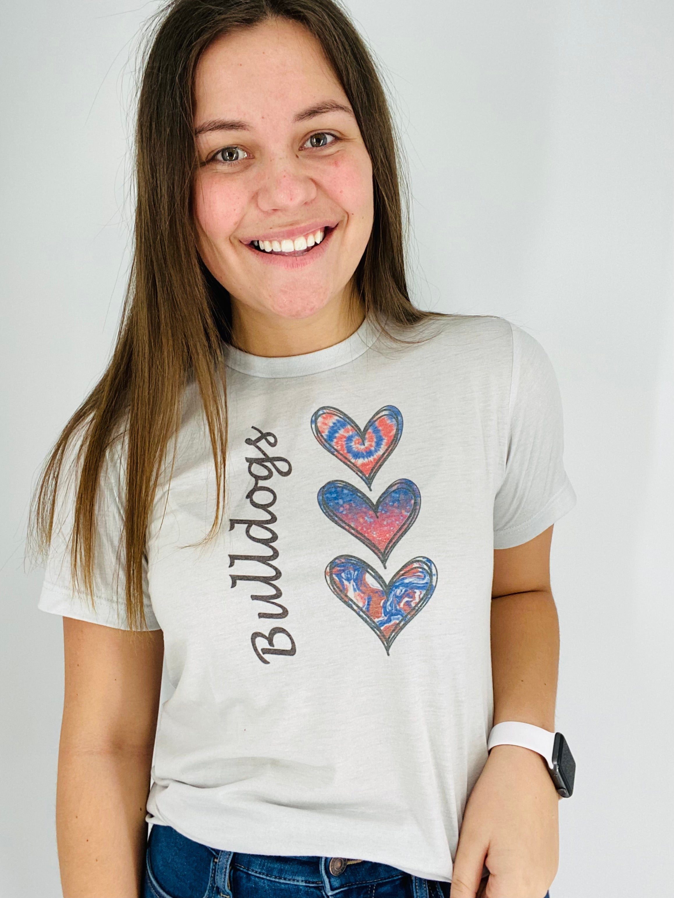 Spread the love for your team with the Bulldogs Triple Heart Tee!