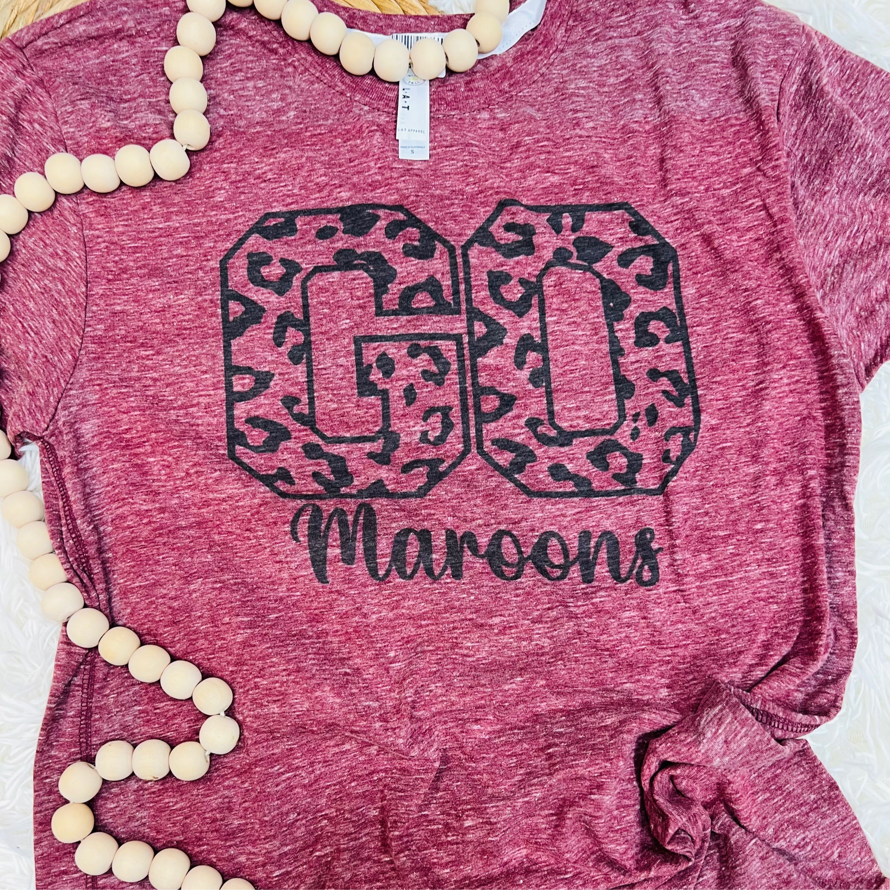 The "Go Maroons Cheetah" printed tee is a bold and stylish way to showcase your team spirit with a trendy twist! Made from soft, high-quality fabric, this tee offers a comfortable and breathable fit, perfect for game days, school events, or casual wear. Featuring the "Go Maroons" graphic in vibrant maroon, paired with a fashionable cheetah print, this design blends school pride with a fun and fierce style. Whether you're cheering on your team, showing off your school spirit, or adding a bit of flair to your everyday outfit, this tee is sure to stand out. Available in various sizes for the perfect fit—show your support for the Indians with this eye-catching and spirited tee!