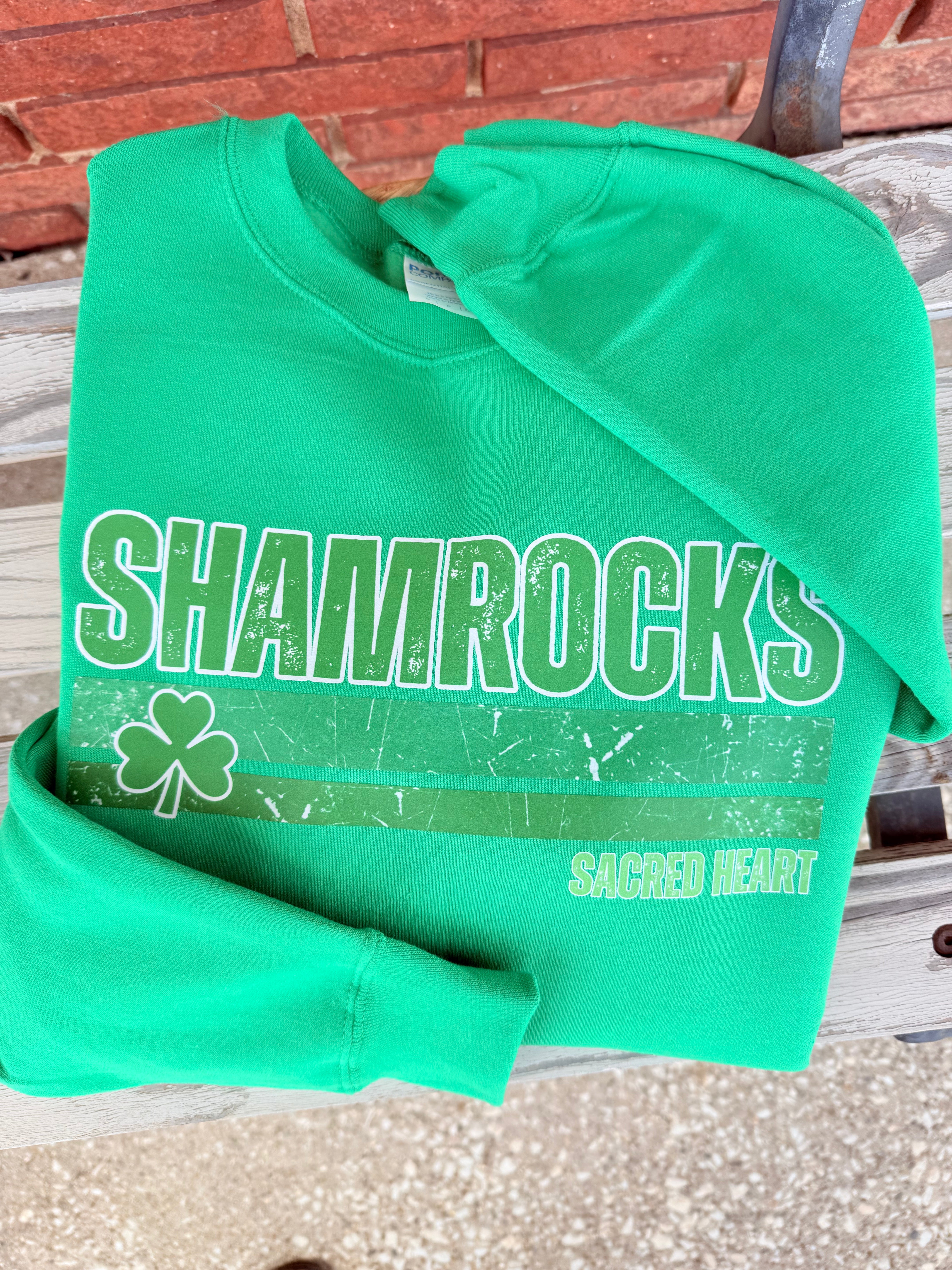 Bold Shamrocks Design – Features a trendy distressed graphic for a vintage, school-spirited look.