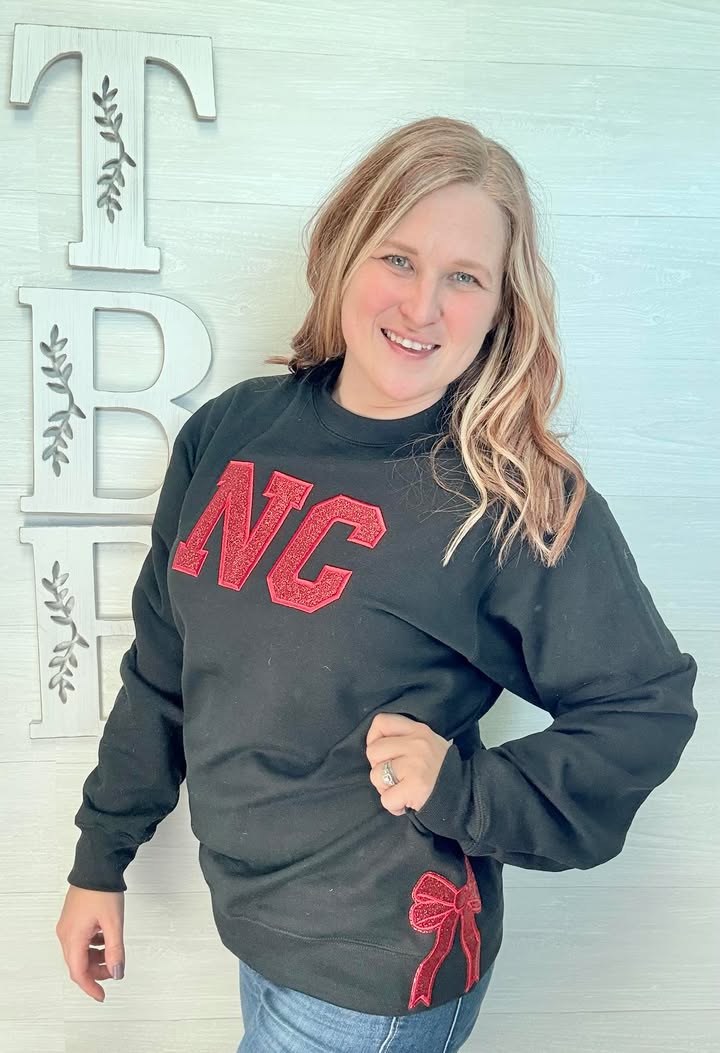 The NC Glitter Bow Crewneck is the perfect blend of school spirit and fun fashion. With its unique design featuring a sparkling glitter bow, this crewneck brings a playful yet stylish flair to your wardrobe. Whether you're cheering on your team or showing off your NC pride, the eye-catching glitter detail adds a touch of excitement to any casual outfit. Soft, comfortable, and made with quality fabric, this crewneck ensures you stay cozy while expressing your school spirit in a fun and standout way.
