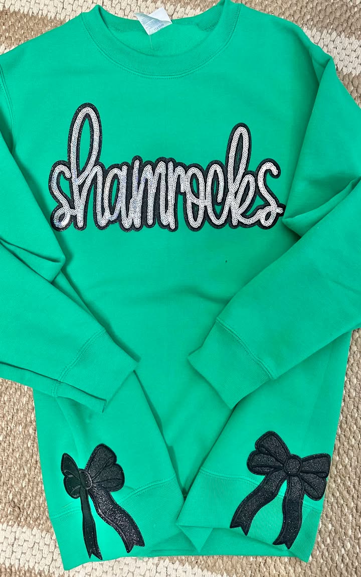 Shamrocks Sequin Glitter Bow Crewneck