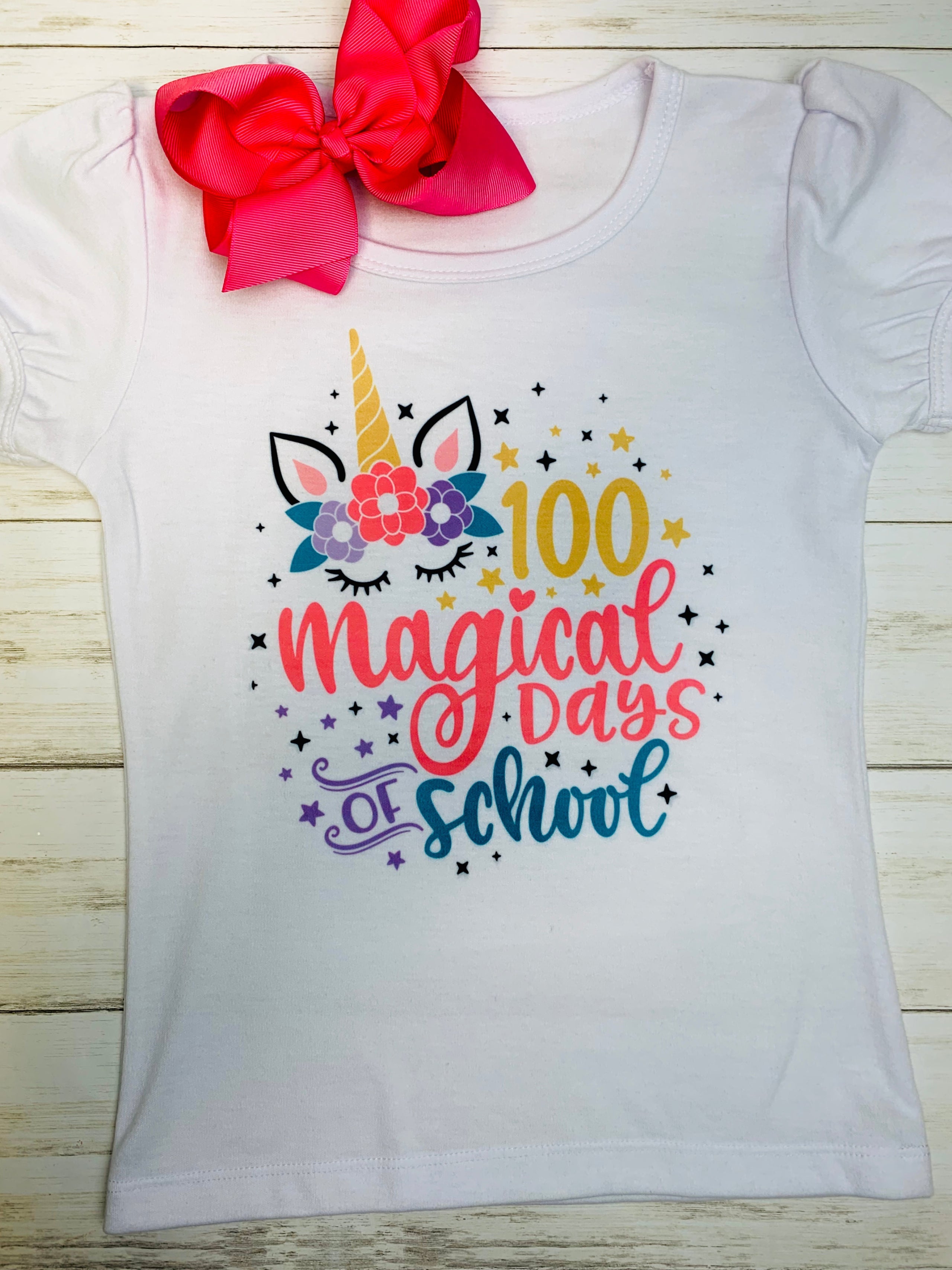 Celebrate a milestone in style with the 100 Magical Days Printed Tee! This sublimation tee features a vibrant and fun design, perfect for marking 100 days of school, learning, and adventure. Made with high-quality, soft fabric, it offers a comfortable fit for all-day wear. The colorful and whimsical design adds a touch of magic, making it a great choice for students, teachers, and school celebrations. Stay comfy while spreading joy with this enchanting 100 Magical Days tee!