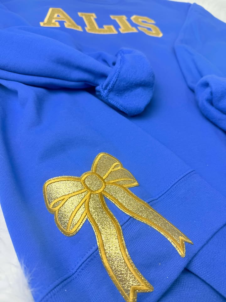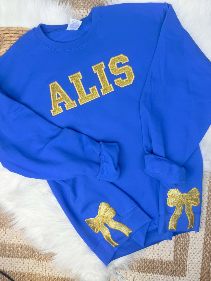 The ALIS Glitter Bow Crewneck is a fun and unique way to showcase your school spirit in style. Featuring a playful design with sparkling glitter accents and a charming bow detail, this crewneck brings a touch of personality and flair to your wardrobe. Perfect for any school event, it combines comfort with eye-catching style, making it a must-have for students who love to stand out. Whether you're supporting your team or simply rocking your school pride, this cozy and stylish crewneck is the perfect addition to your collection!