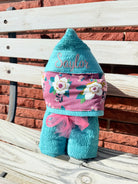 Introducing the plum Floral Hooded Towel - perfect for drying off after a bat! Towel color may vary! Stay cozy and dry with this full-sized towel long ways and attached hood. And at just 10 business days, you'll have it in no time!